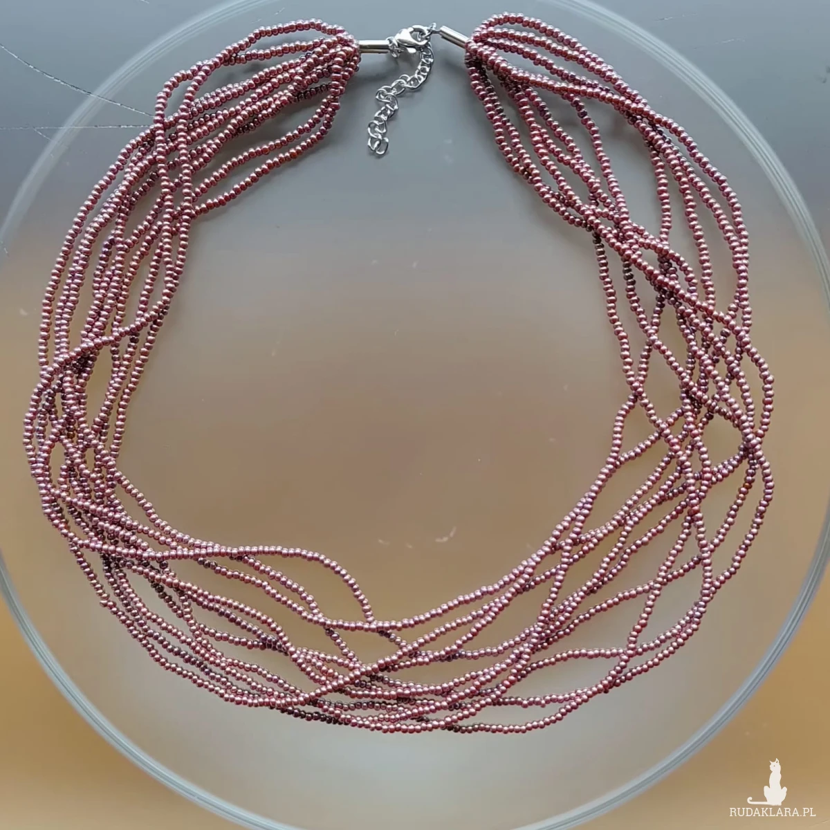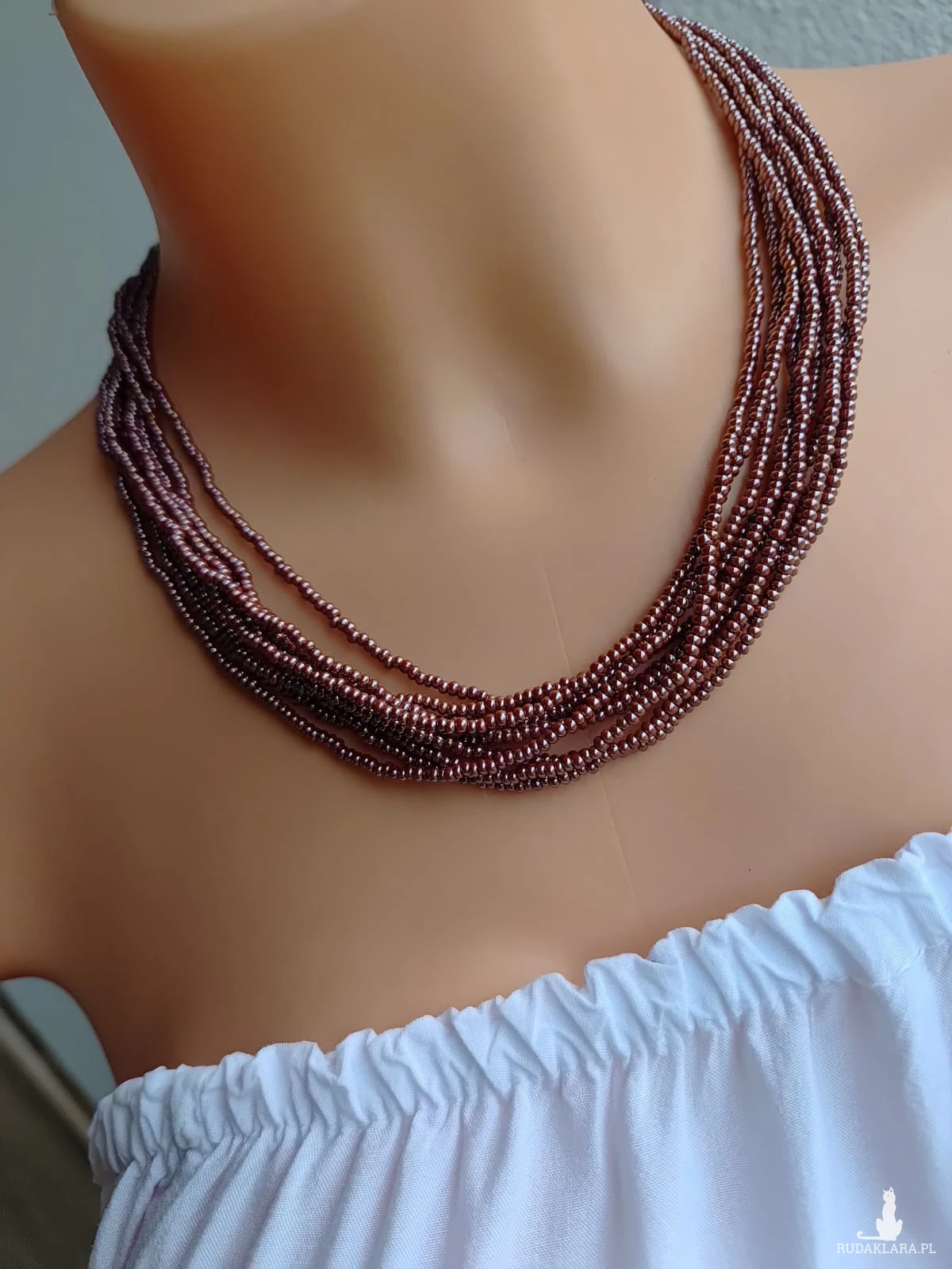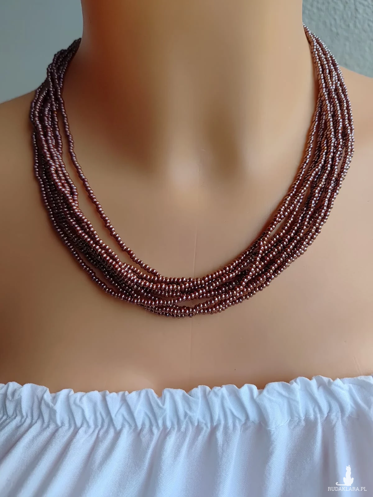 Naszyjnik z koralików w brązowym kolorze, koraliki błyszczące, bardzo drobne 1,5 mm Objętość wokół szyi 46 cm