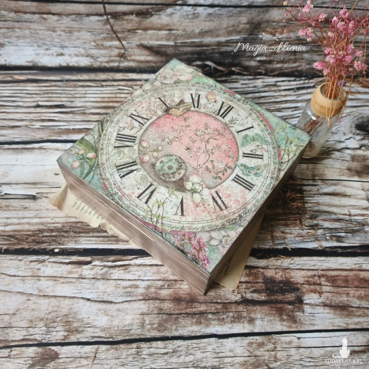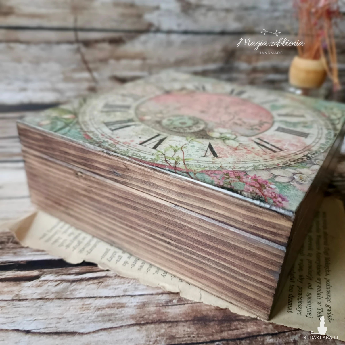 Drewniane pudełko zdobione ręcznie techniką decoupage.