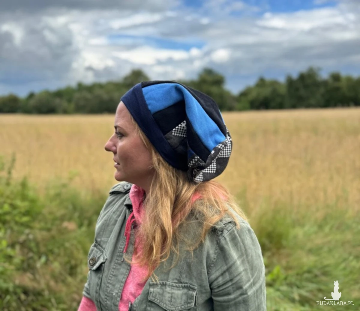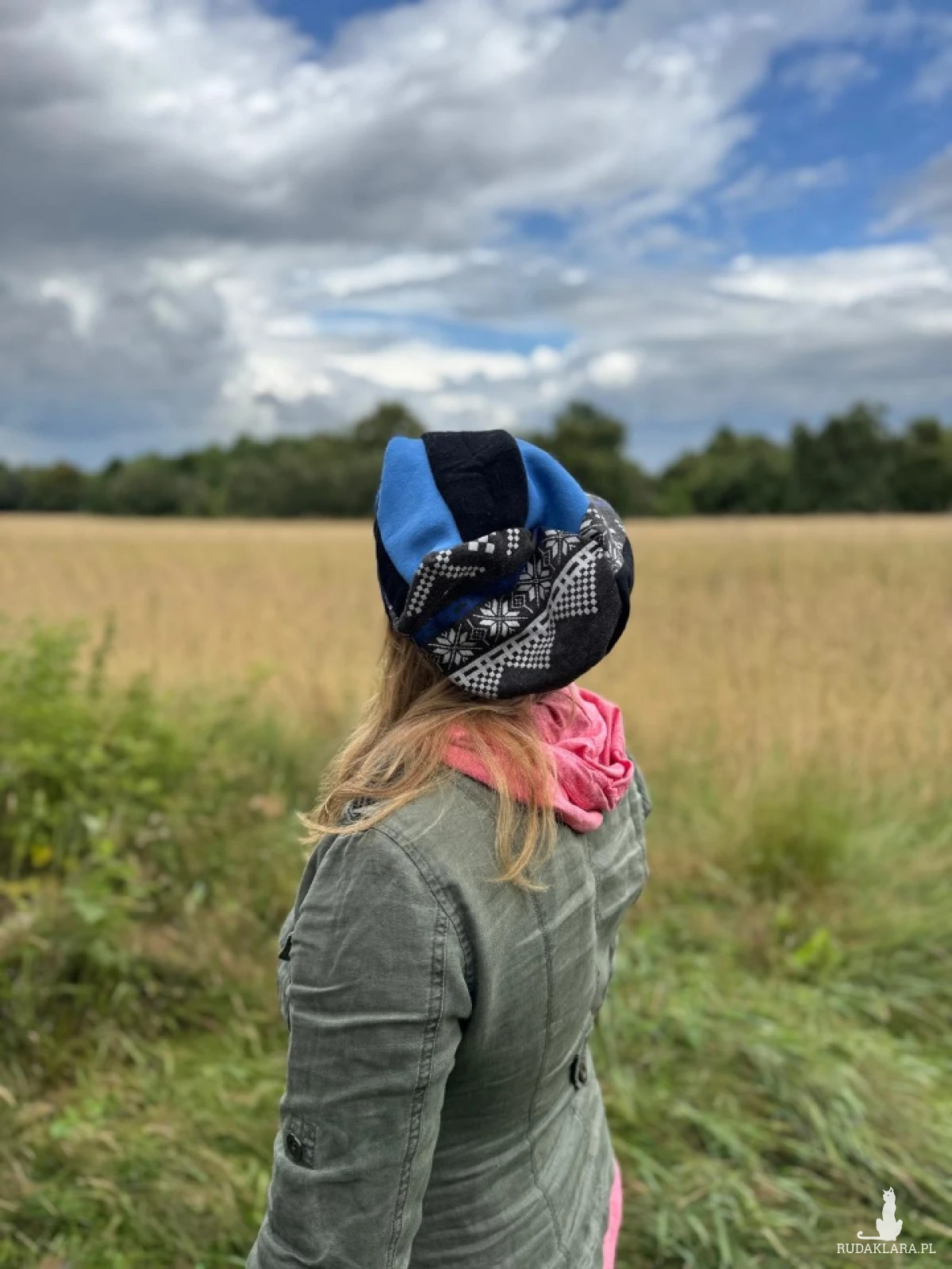 Czapka kolorowa codzienna Smerfetka szyta patchworkowa rozmiar uniwersalny na podszewce box a1