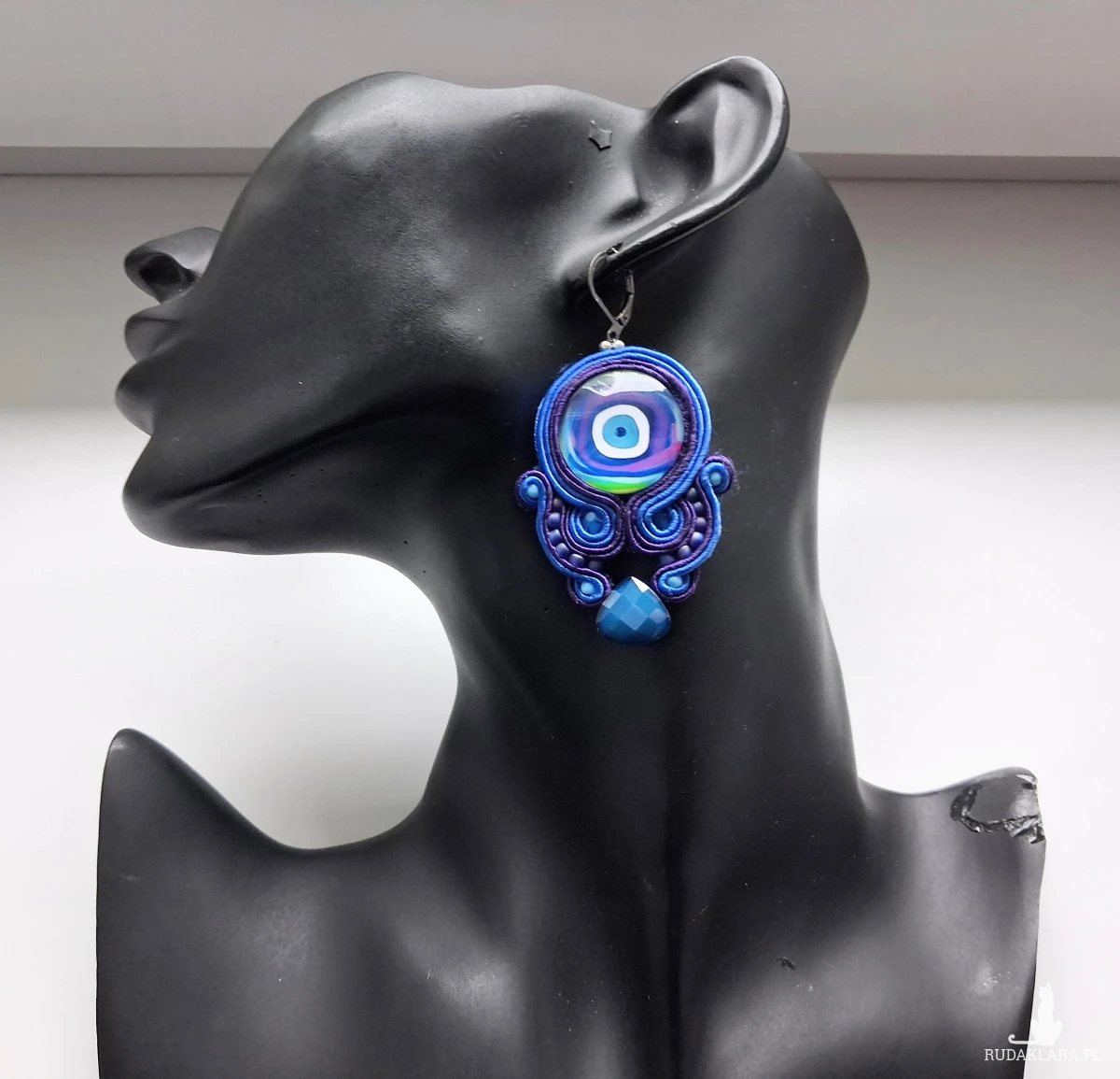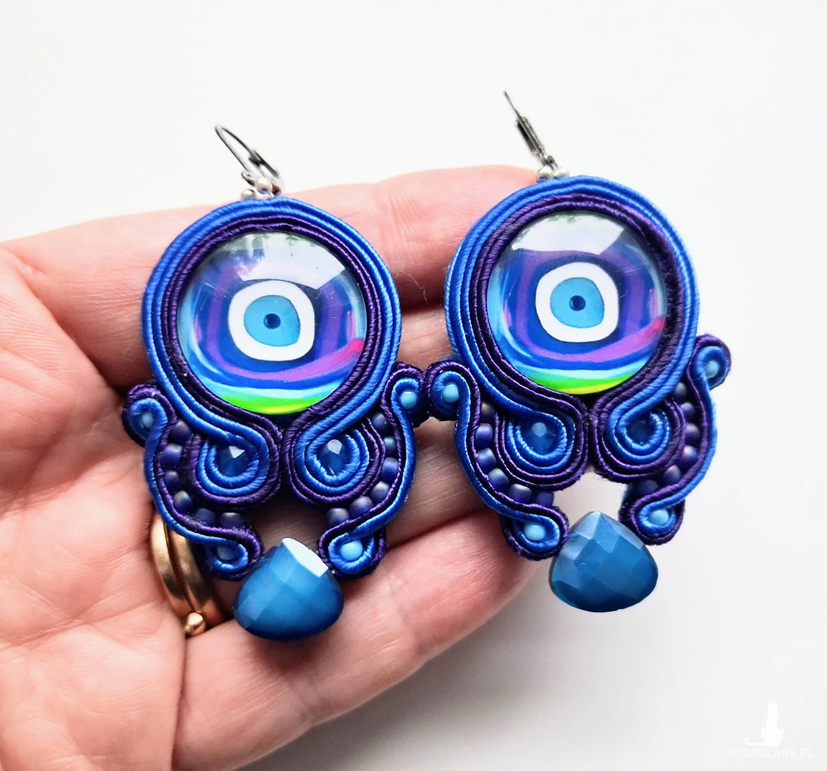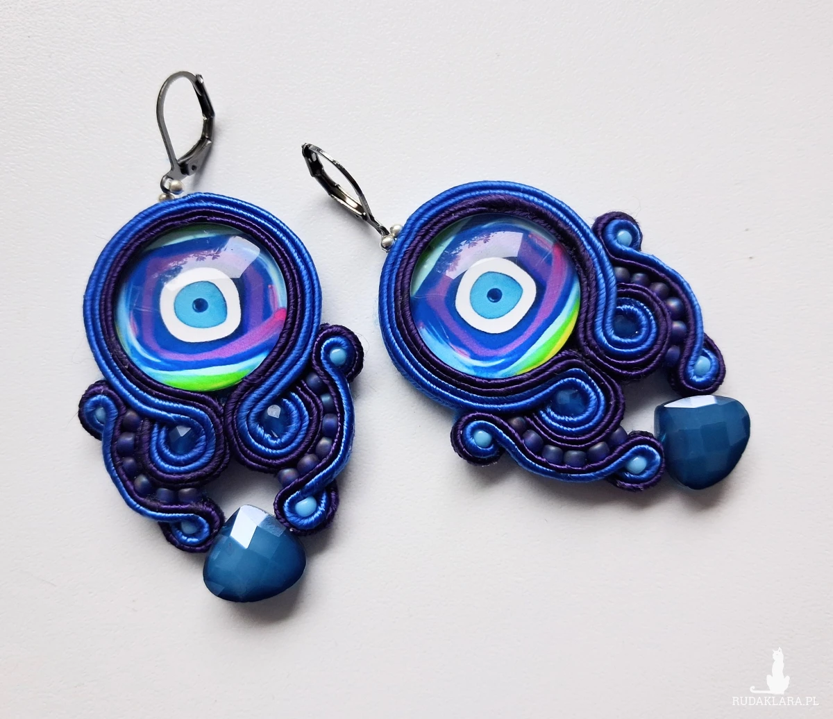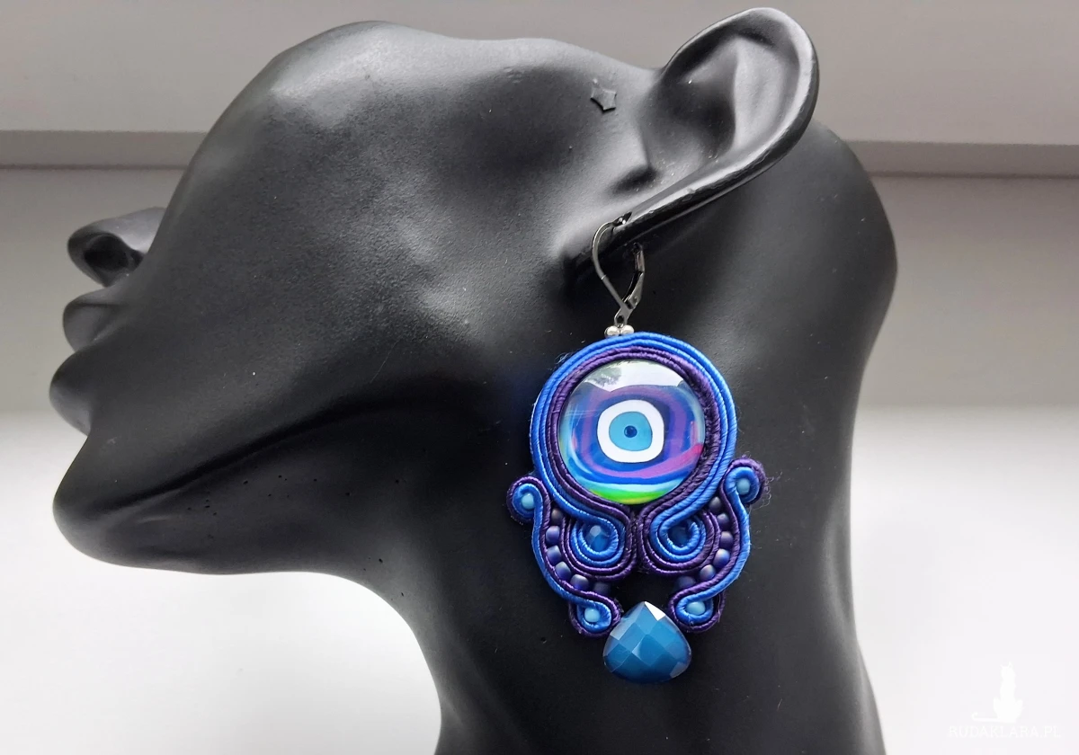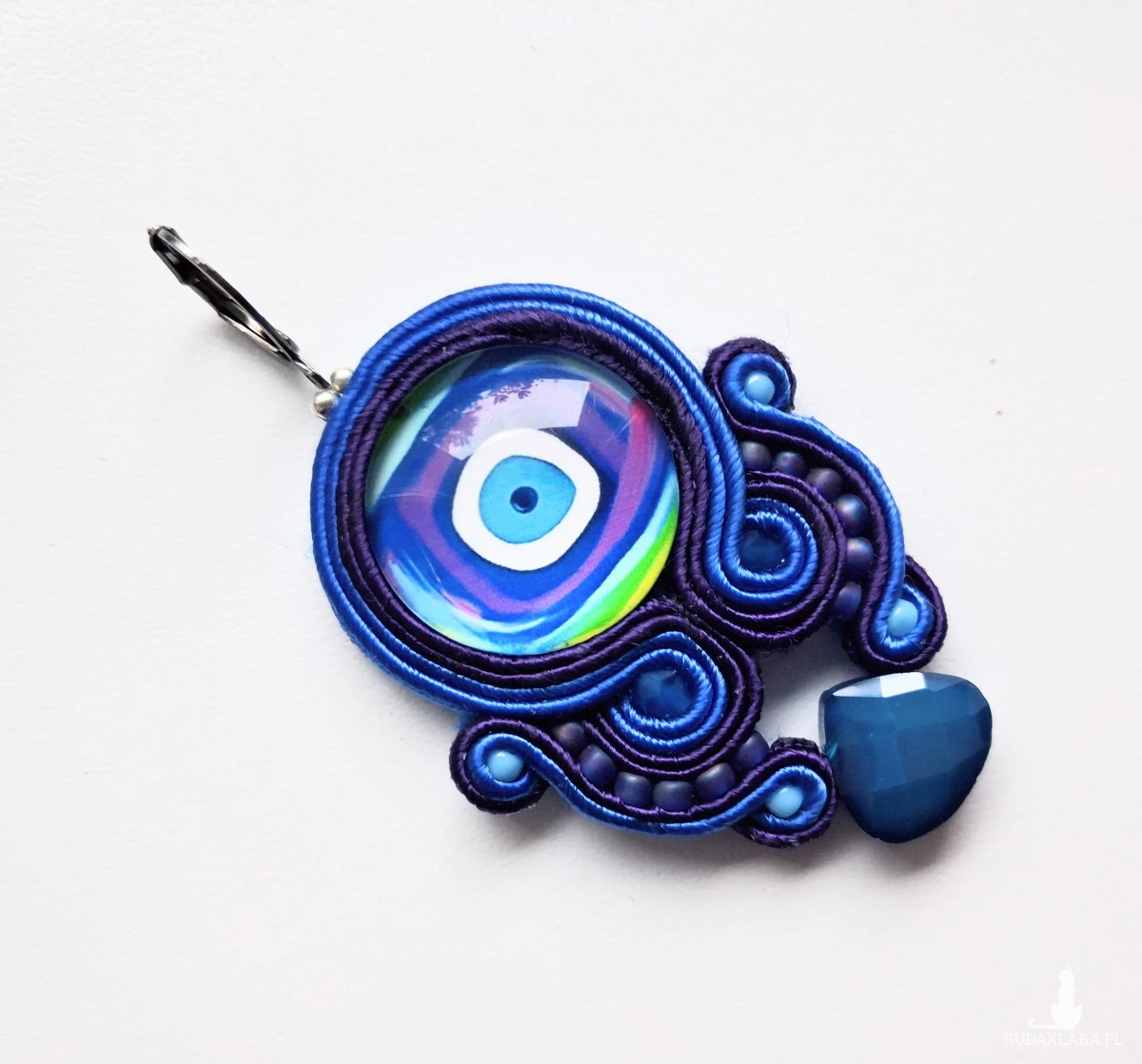 Materiał: sutasz, kaboszon z nadrukiem, japońskie koraliki Toho, Fire Polish