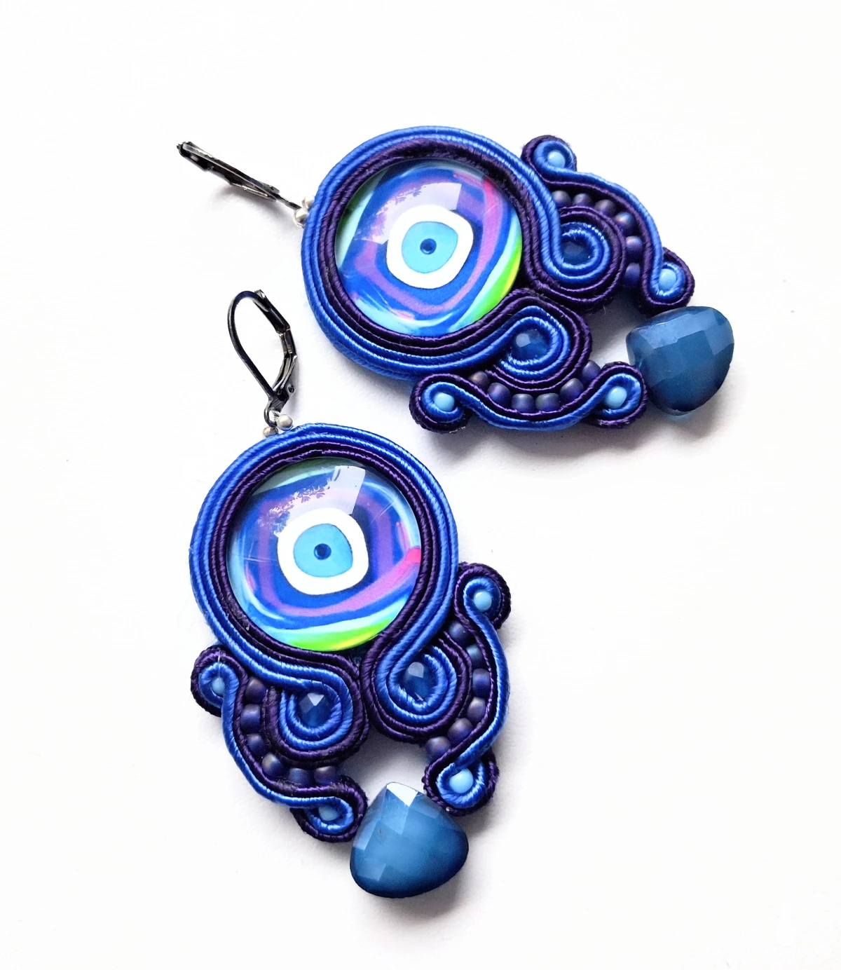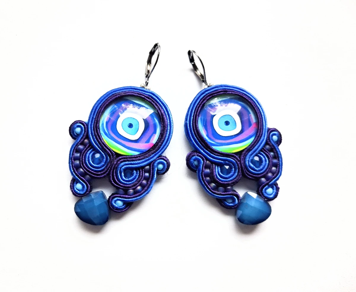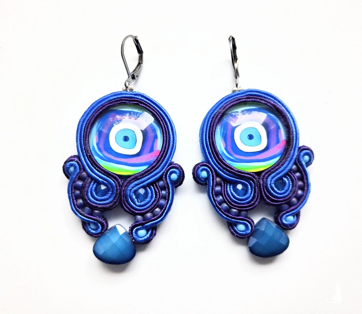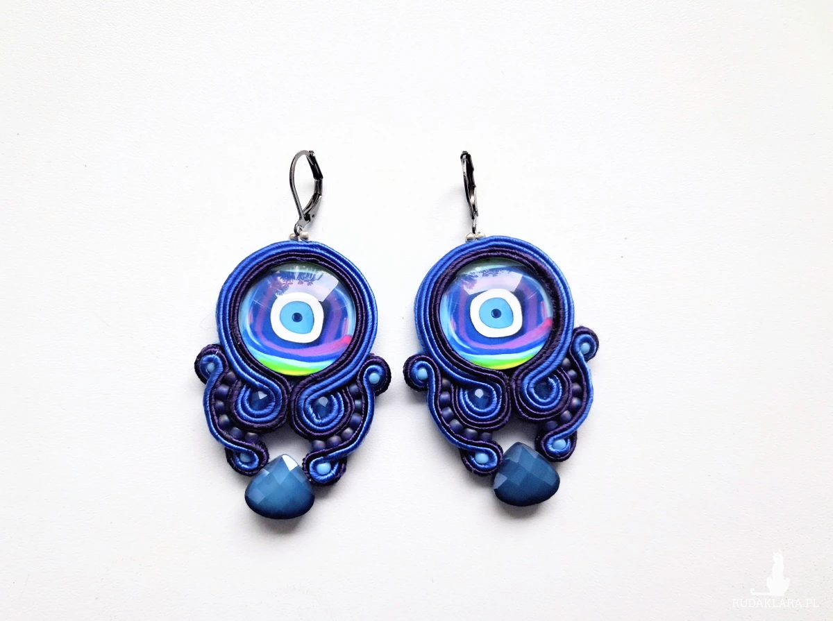 Materiał: sutasz, kaboszon z nadrukiem, japońskie koraliki Toho, Fire Polish