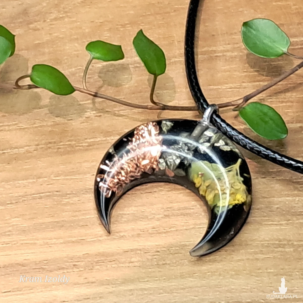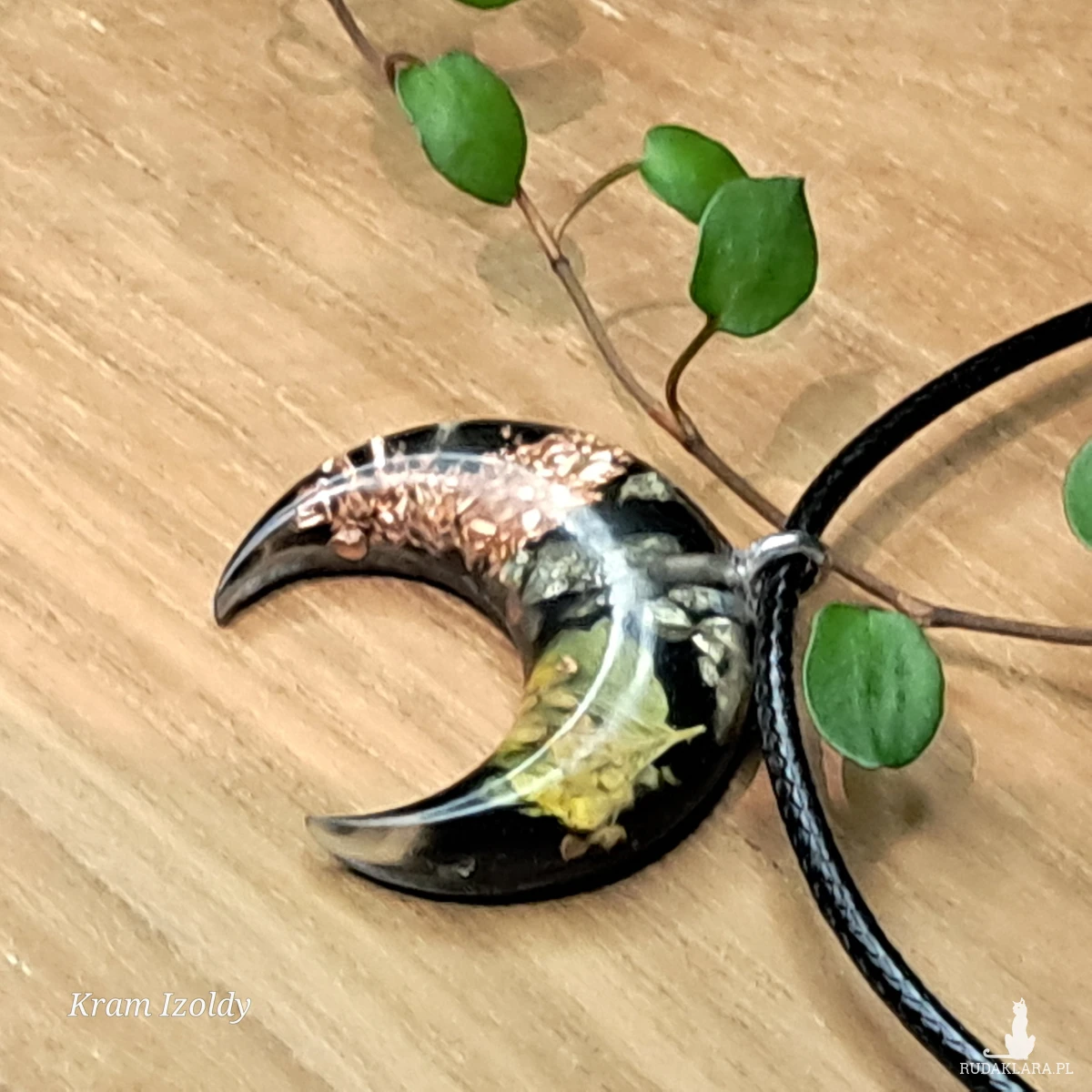 Unikatowa lunula inspirowana dawną symboliką słowiańską – talizmanem kobiecości, ochrony i siły cykli natury. Ta współczesna interpretacja została zamknięta w formie orgonitu, łącząc w sobie tradycję z nowoczesną energią.