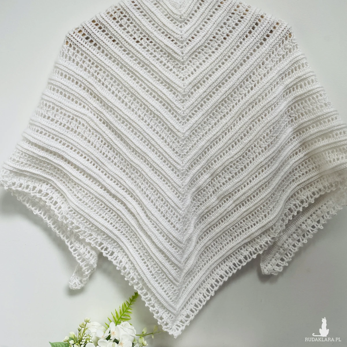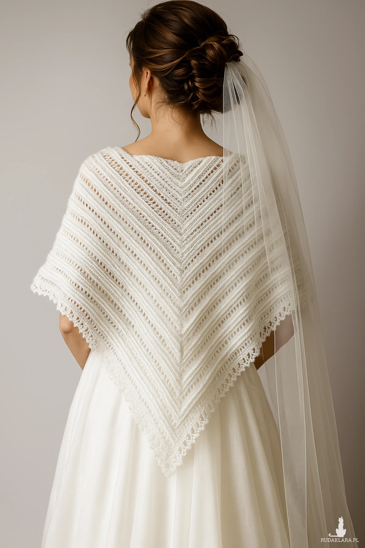 Ręcznie robiona chusta to artystyczne dopełnienie sukni ślubnej dodające jej uroku i romantyzmu. Wykonanie handmade sprawia, że jest niepowtarzalnym, wysokiej jakości dodatkiem, który uczyni ten dzień jeszcze bardziej niezapomnianym.