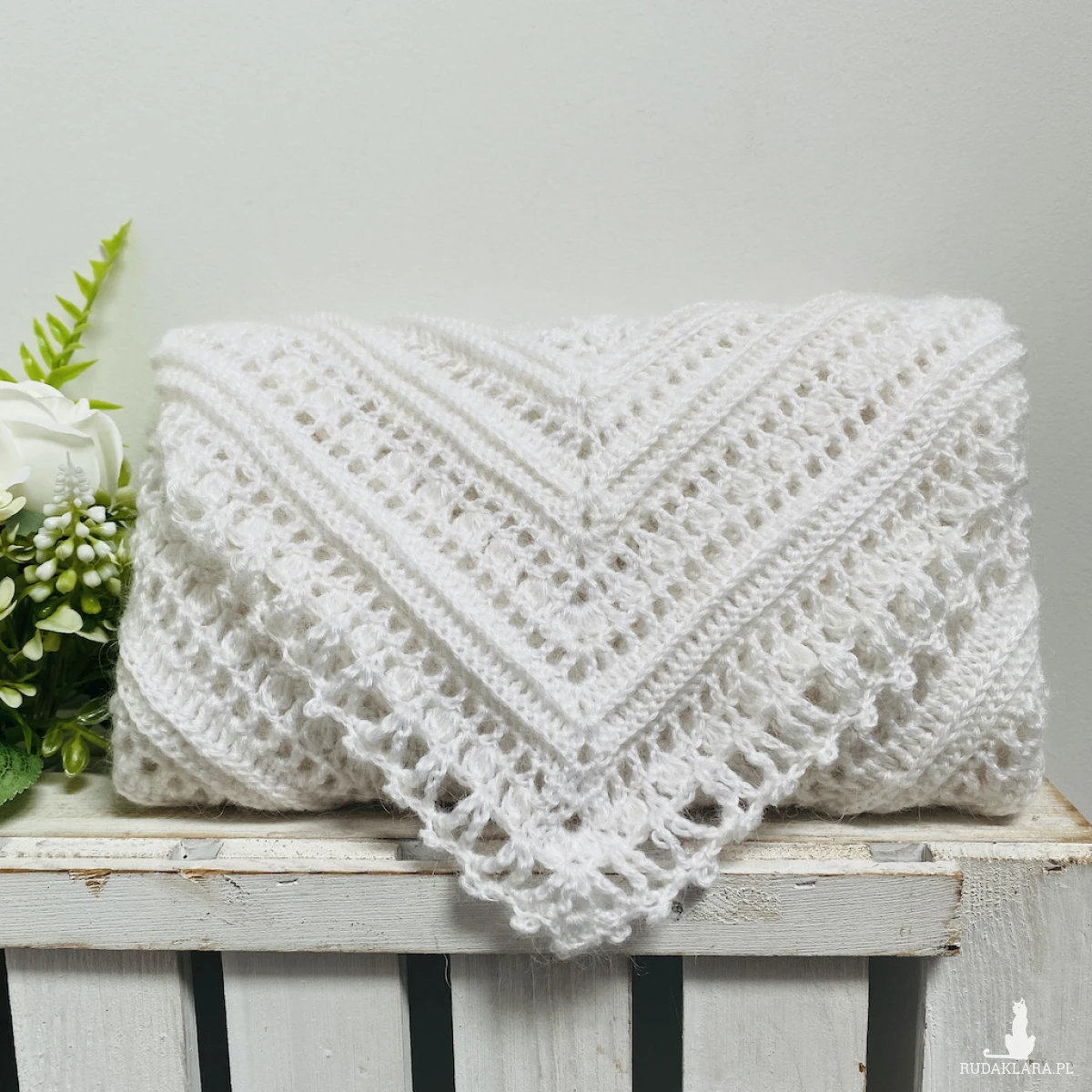 Chustę wykonałam na szydełku z włóczki Papatya Angora, która zachwyca swoją miękkością i delikatnością. Połączenie 20% wełny merynosów znanej z doskonałych właściwości termoizolacyjnych, z 80% akrylu sprawia, że jest to idealny wybór na chłodniejsze dni oraz stylowy element garderoby. Certyfikat OEKO-TEX® Standard 100 potwierdza, że jest bezpieczna dla a zdrowia materiały użyte do jej produkcji są wolne od szkodliwych substancji chemicznych.