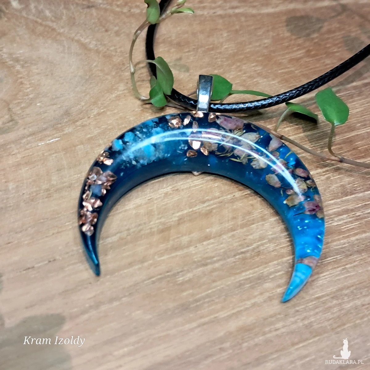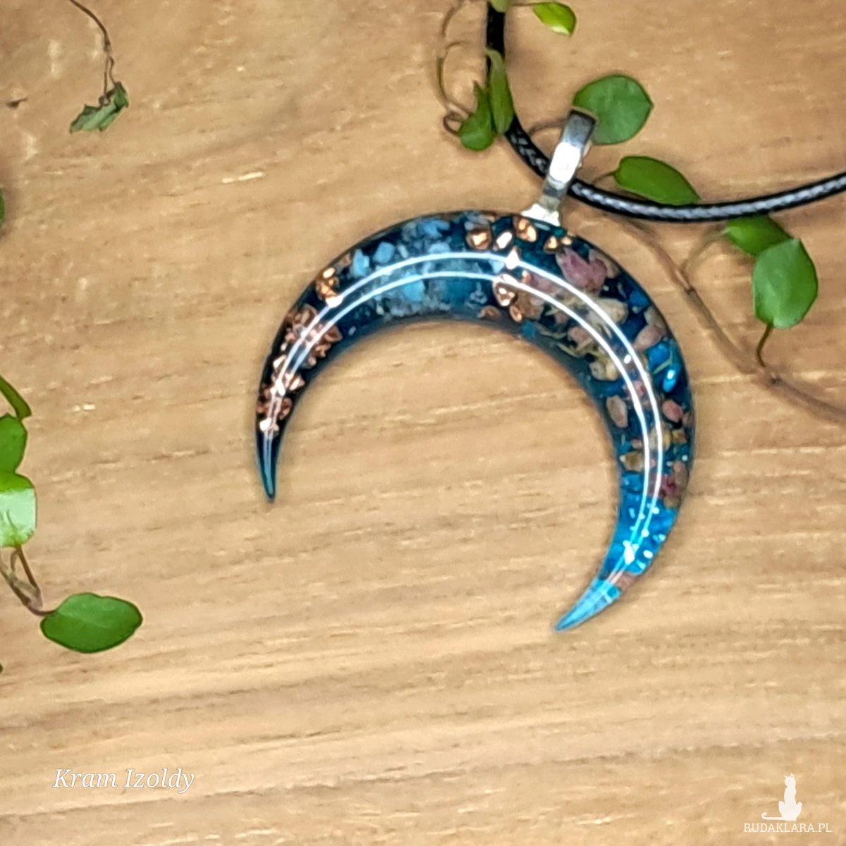 Turkusowa Lunula – orgonit z apatytem i wrzoścem