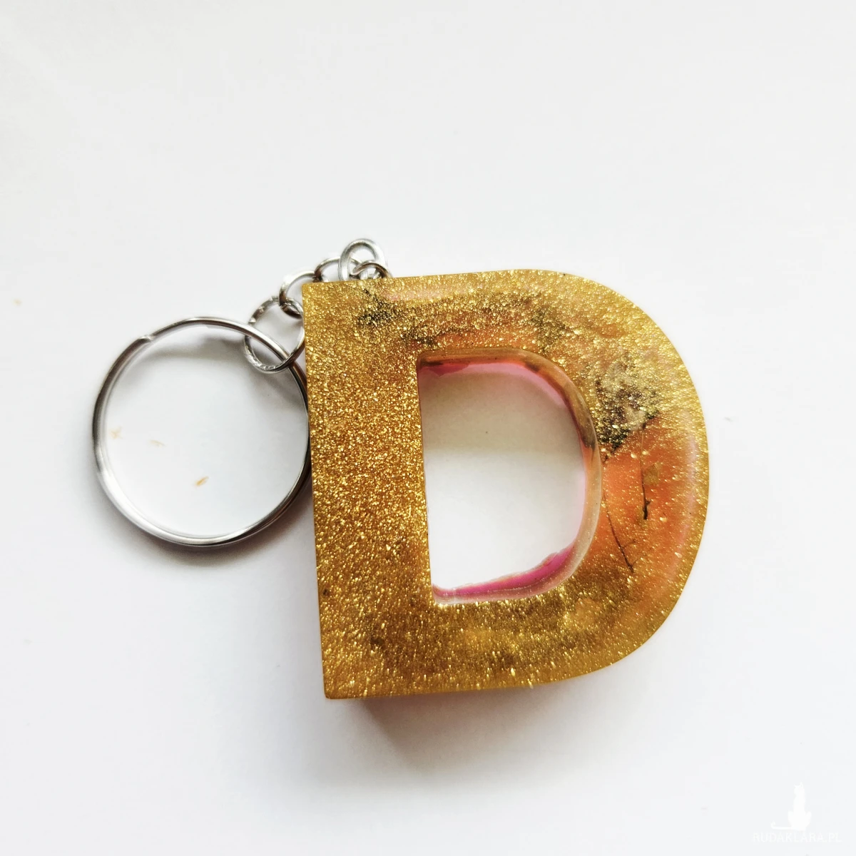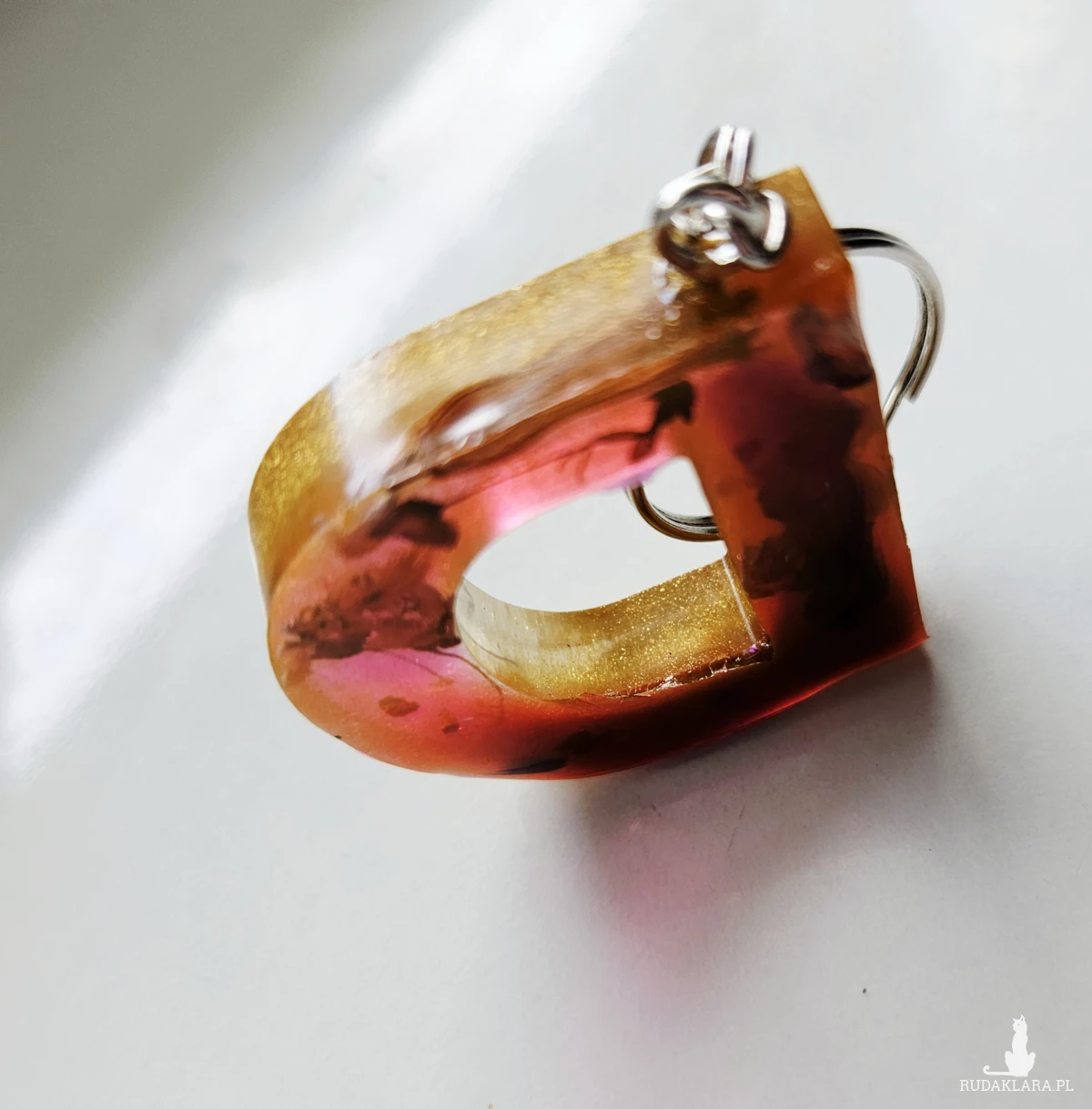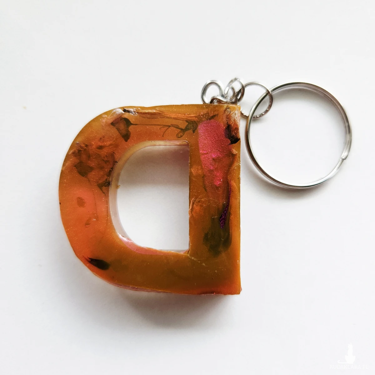 Brelok literka D z żywicy czerwona z złotem i cieniowaniem