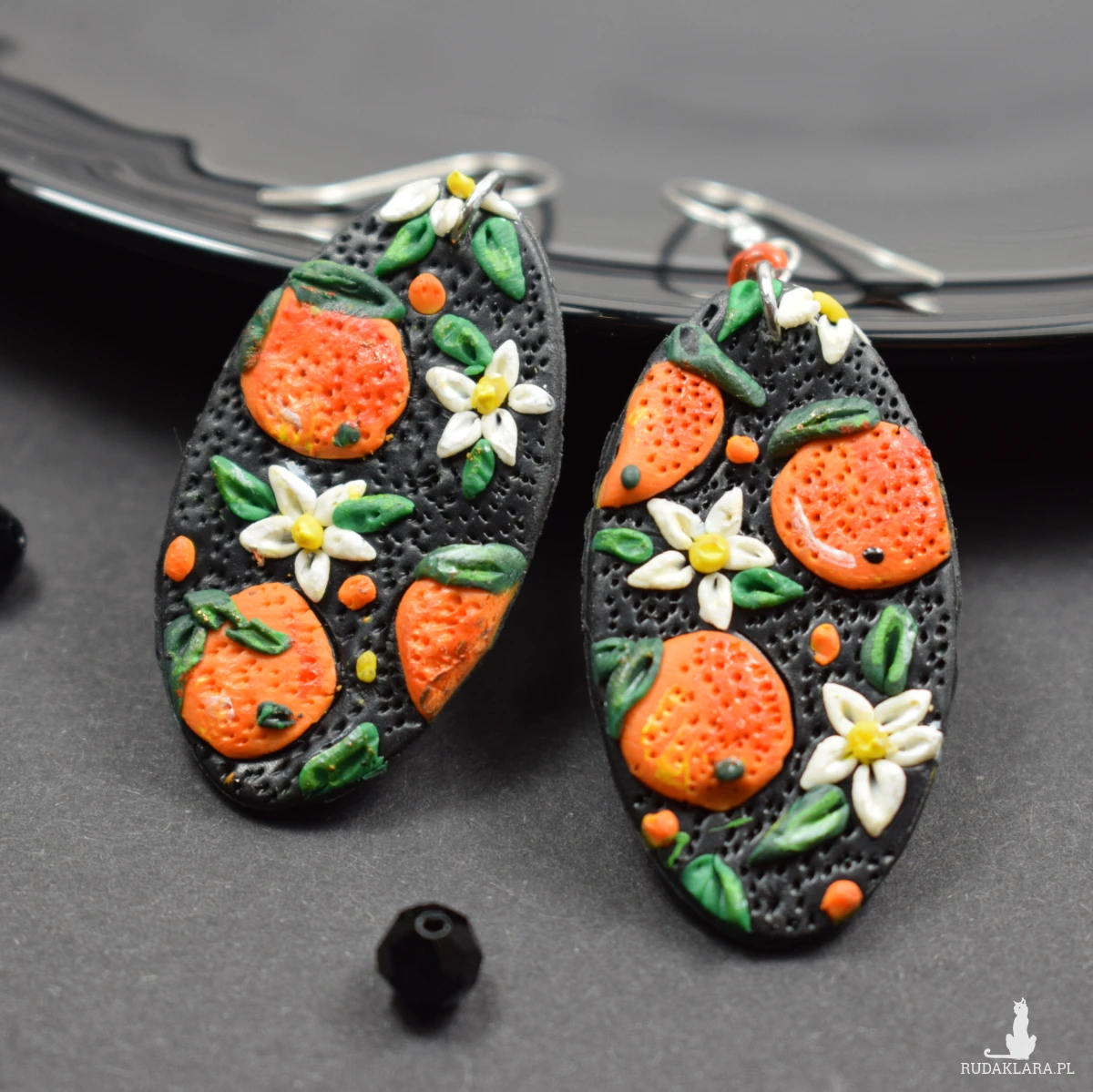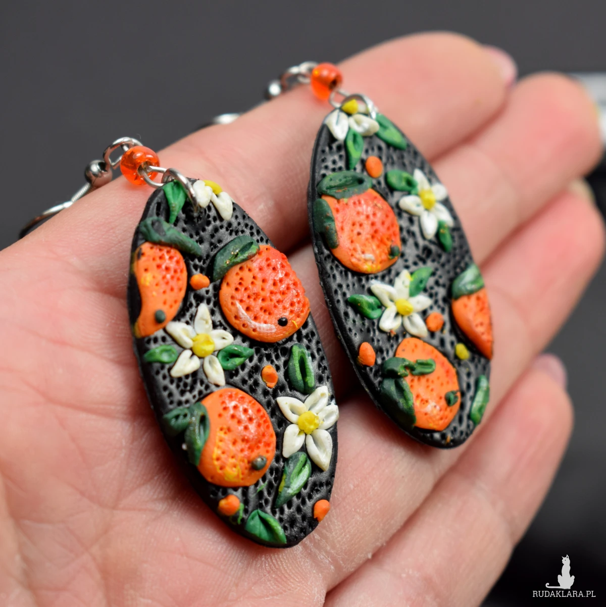 Wyraziste i pełne letniej energii kolczyki z motywem soczystych pomarańczy.