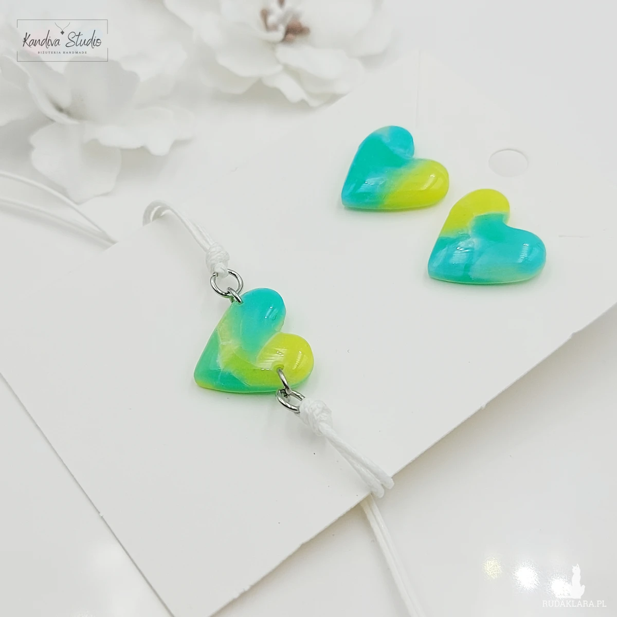 Zestaw biżuterii z glinki polimerowej w kolorach: żółty i morska zieleń.