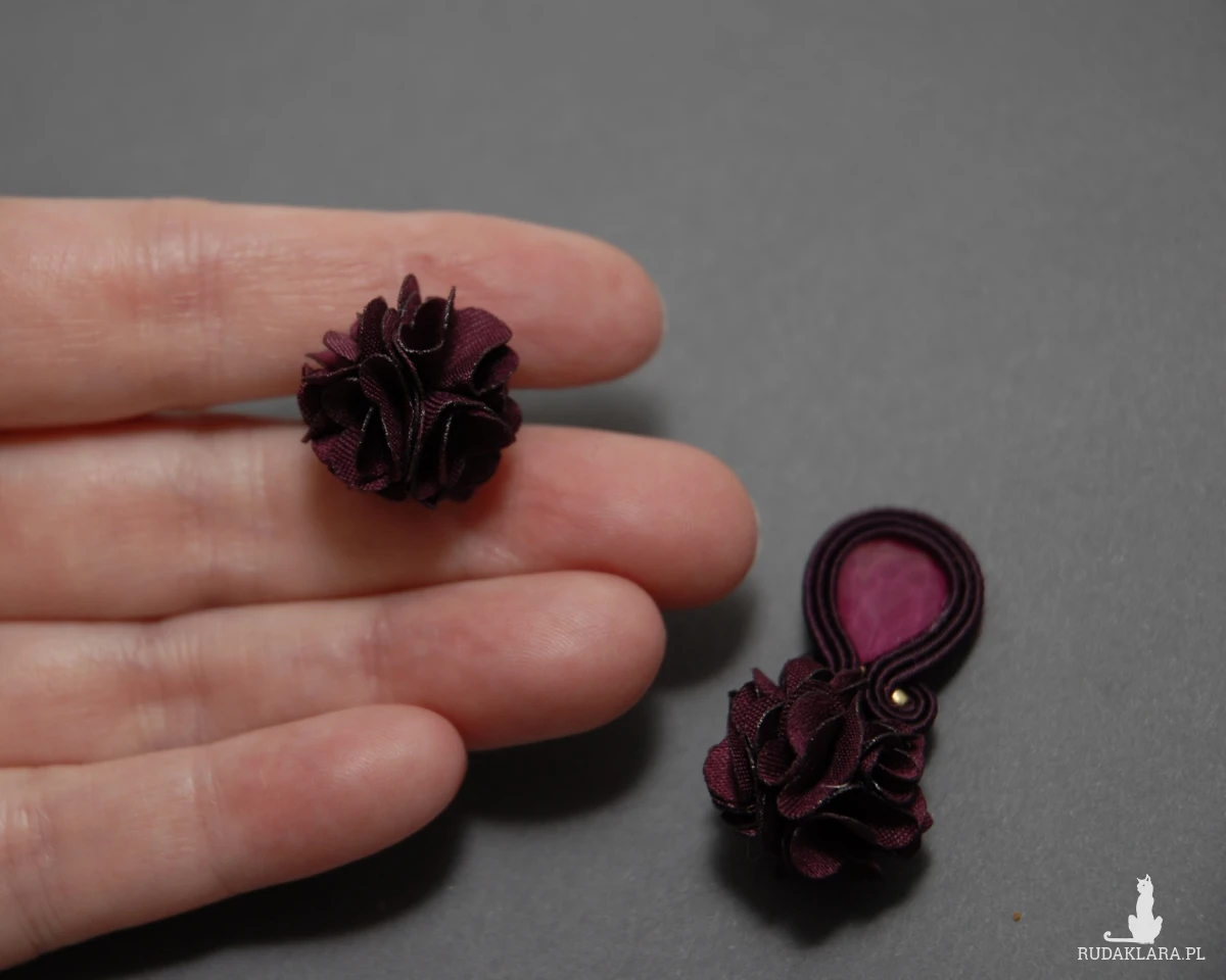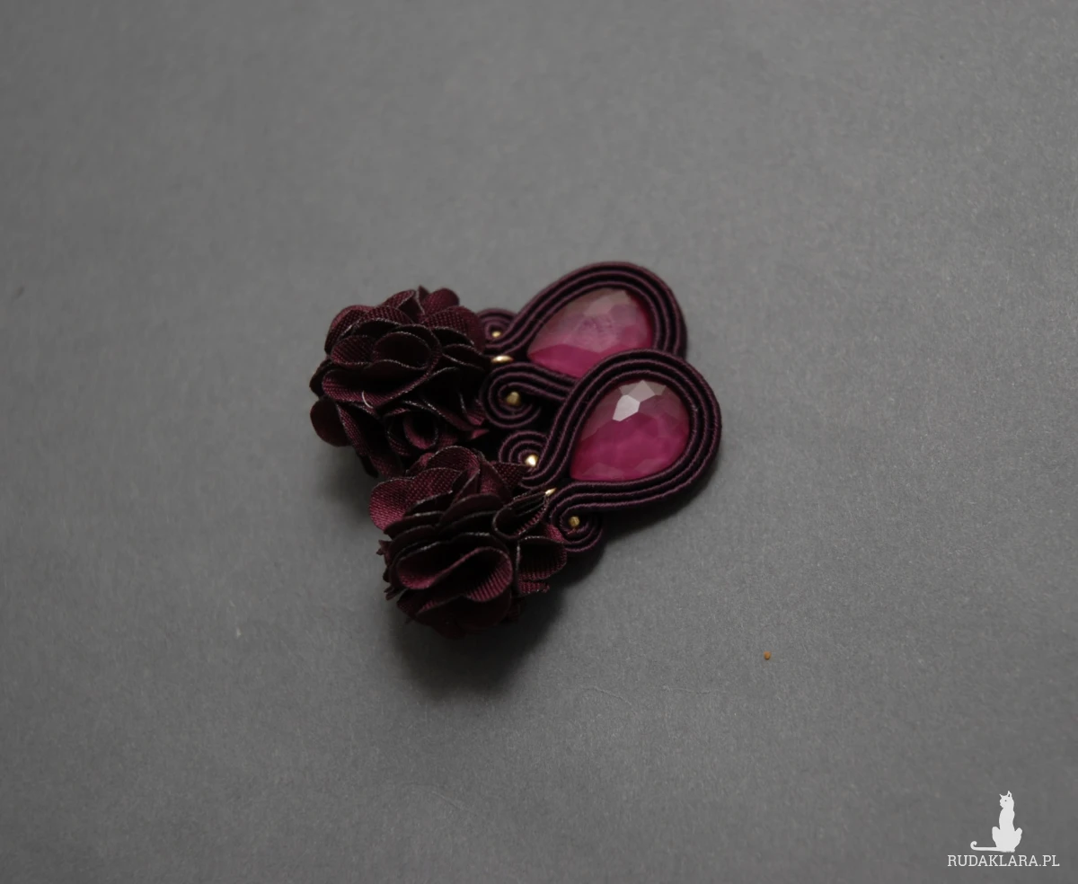 bordowe kolczyki lub klipsy sutasz z kwiatkami