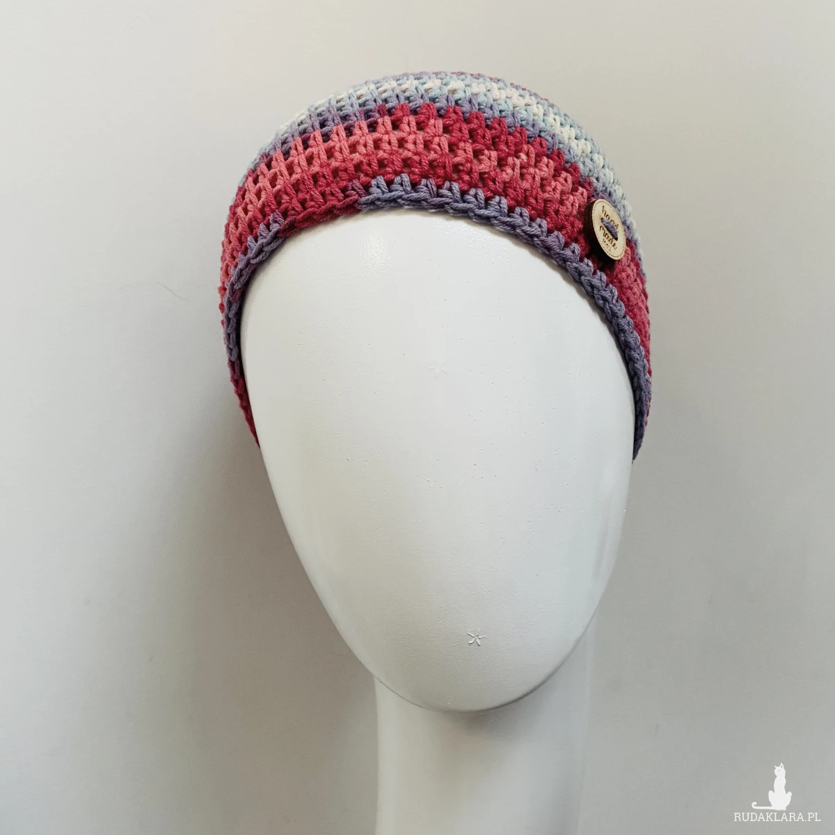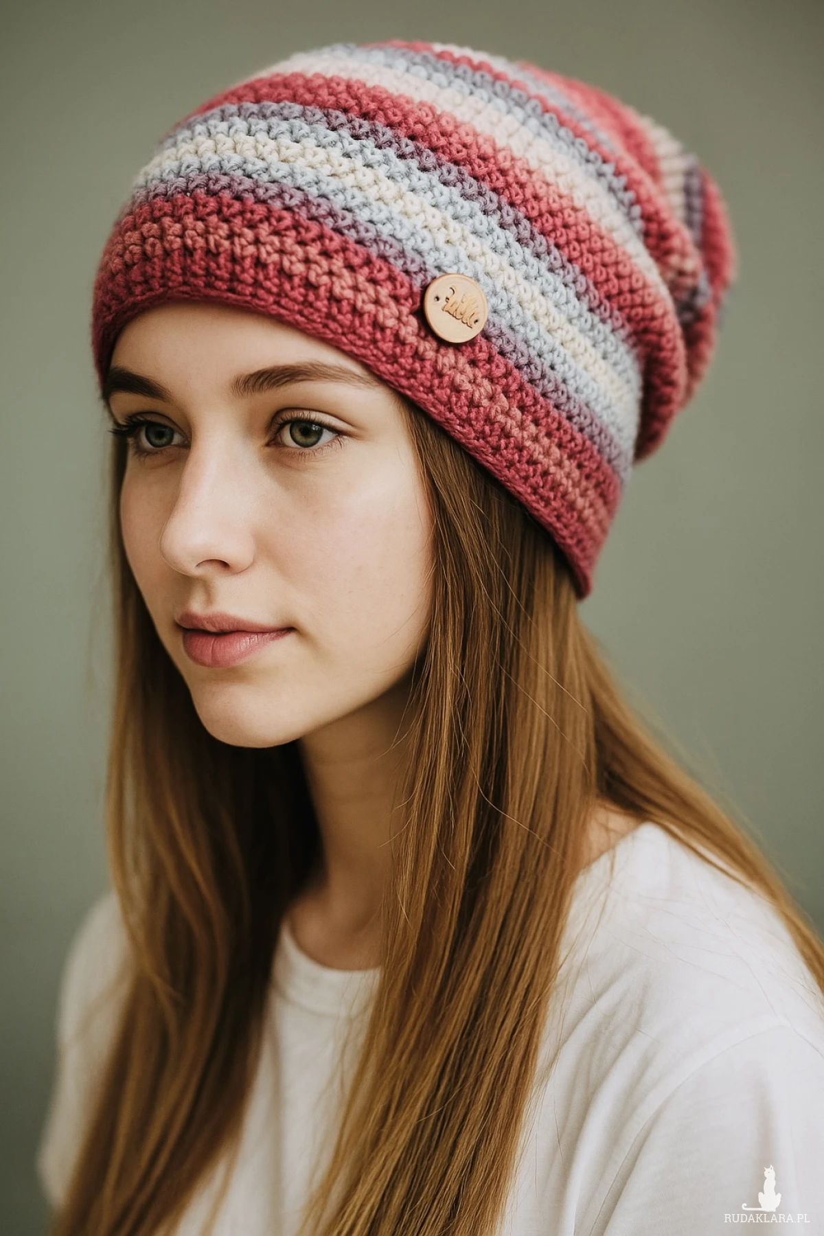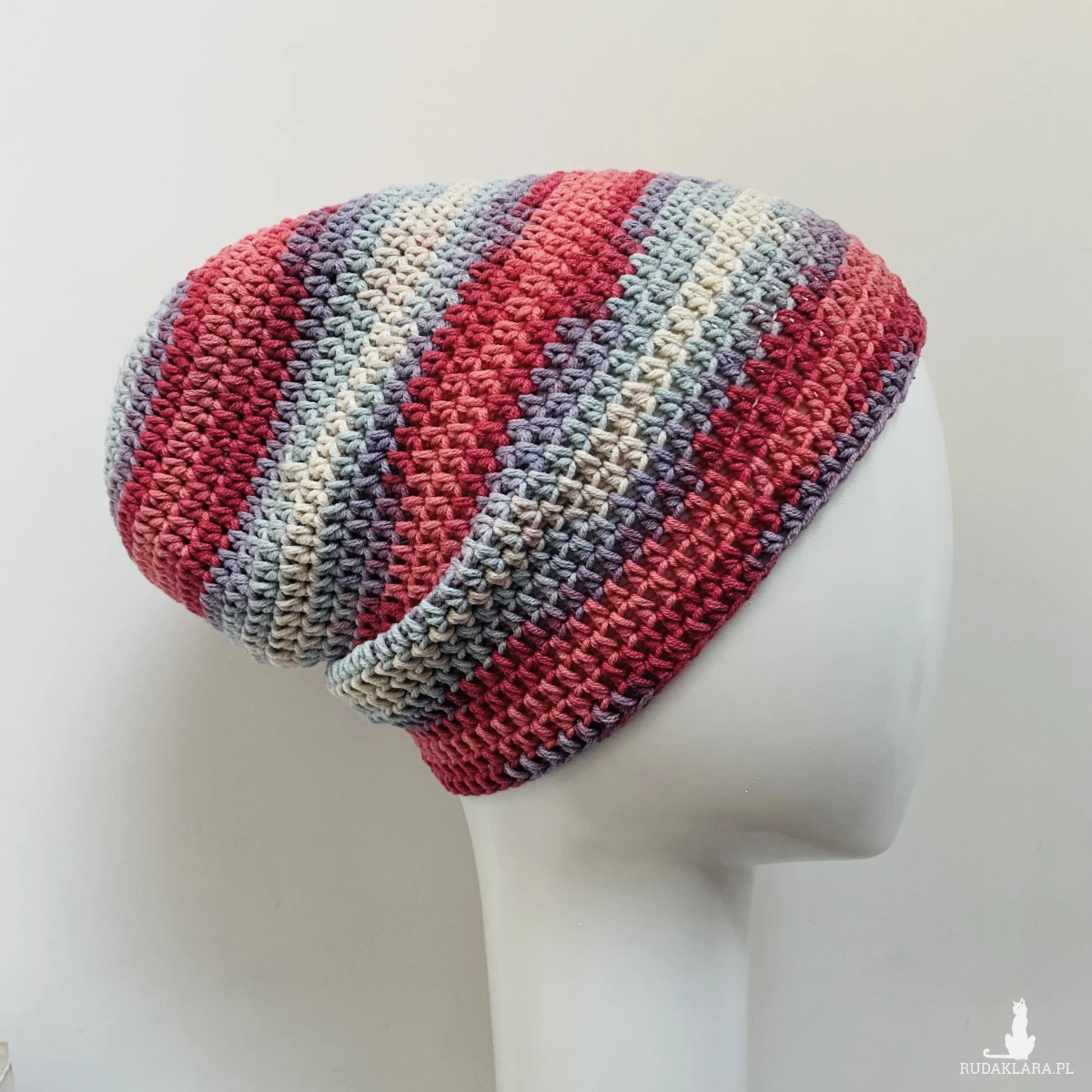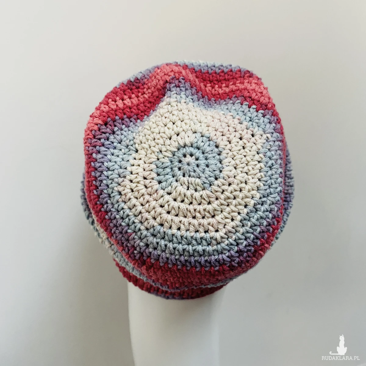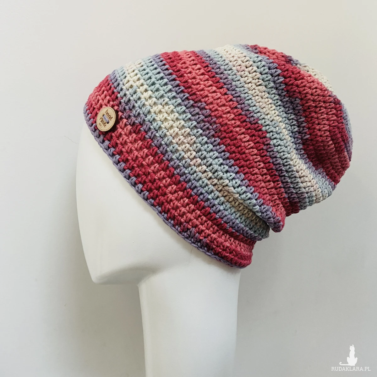 Czapkę wykonałam z wysokiej jakości włóczki bawełniano-akrylowej, która zapewnia wygodę noszenia przez cały dzień.
