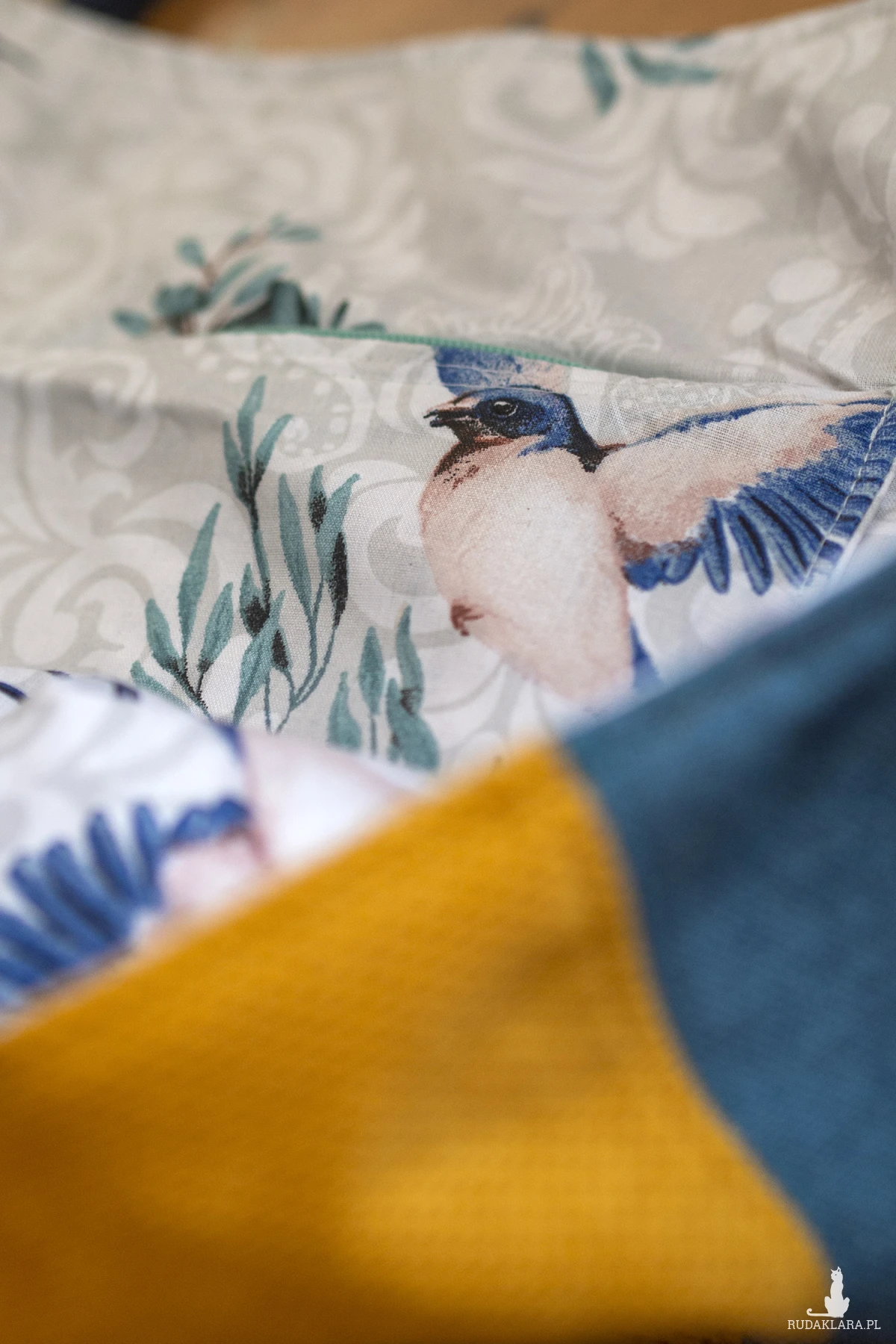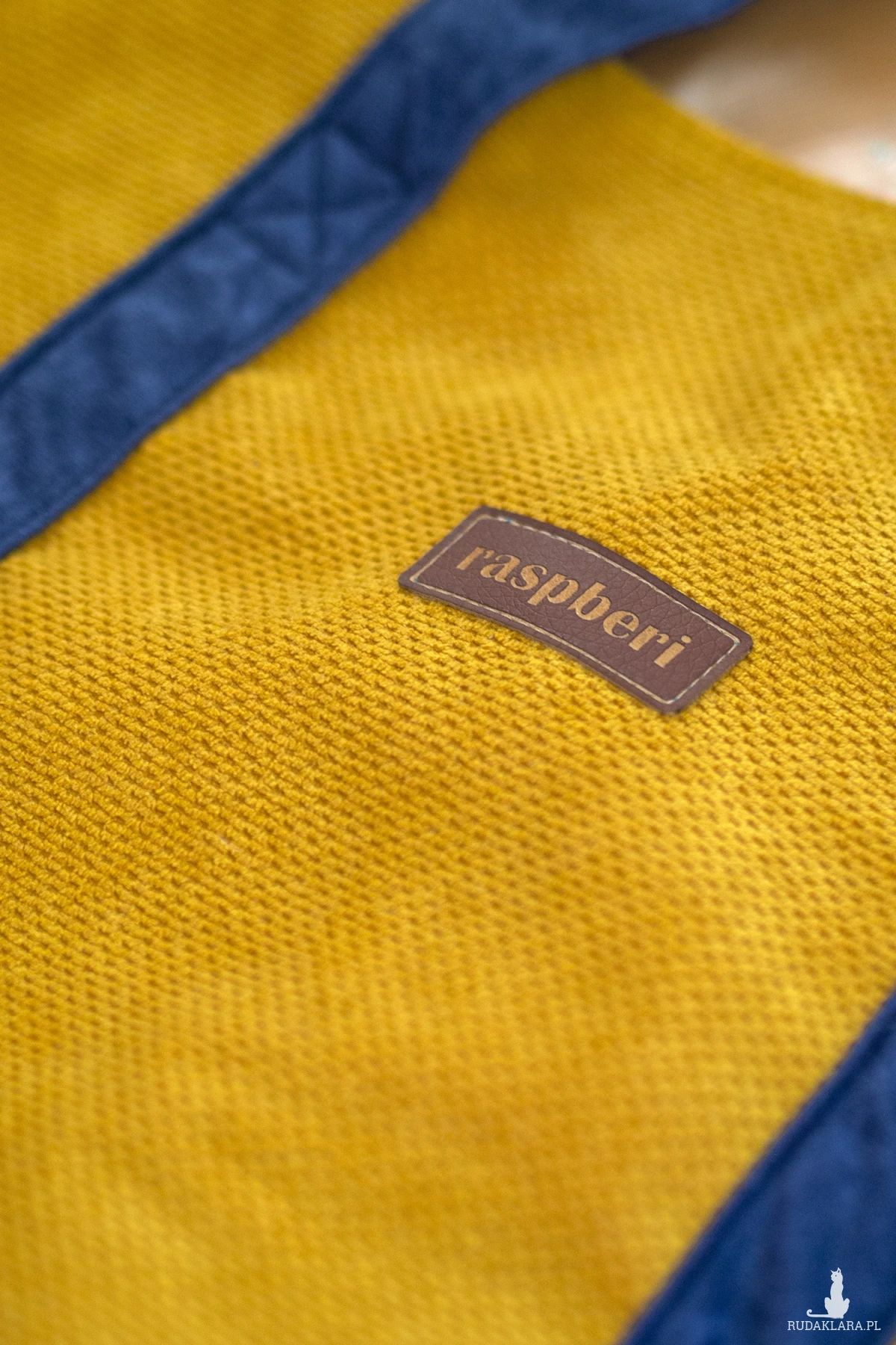 Duża torba typu shopperka w kolorze miodowo-turkusowym. Pasy z granatowej mikrofazy.