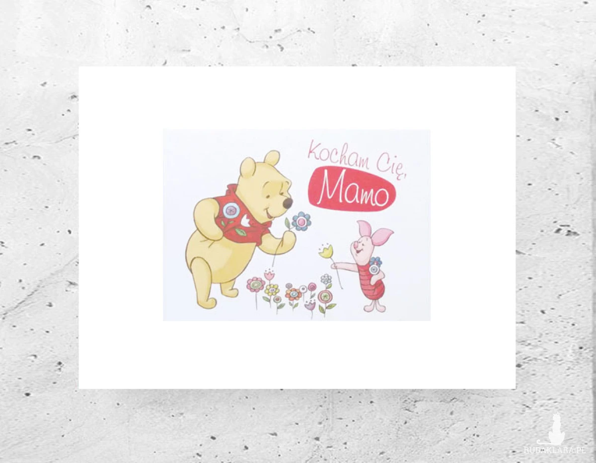 Nowy, kolorowy plakat z Kubusiem Puchatkiem i Prosiaczkiem. Bajkowa dekoracja na ścianę do dziecięcego pokoju, kuchni, jadalni, żłobka, przedszkola, bawialni, klubu malucha itp. Grafika na białym kartoniku w rozmiarze A4. Poster wystarczy dać do ramki w rozmiarze 21 x 30 cm..
