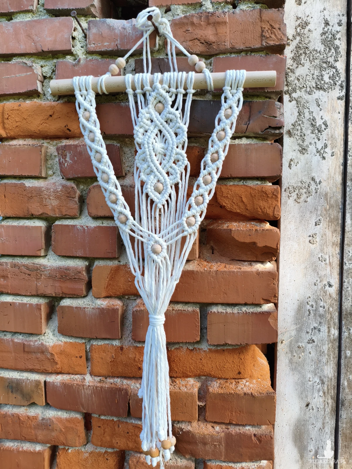 Kwietniki w stylu Boho na jeden kwiat w doniczce, całkowita długość kwietnika 65 cm i szerokość kija 40 cm. Doniczka na zdjęciu jest o średnicy 15 cm większa o kilka cm również będzie odpowiednia. W sprzedaży bez doniczki. Kwietniki w kolorze naturalnym.