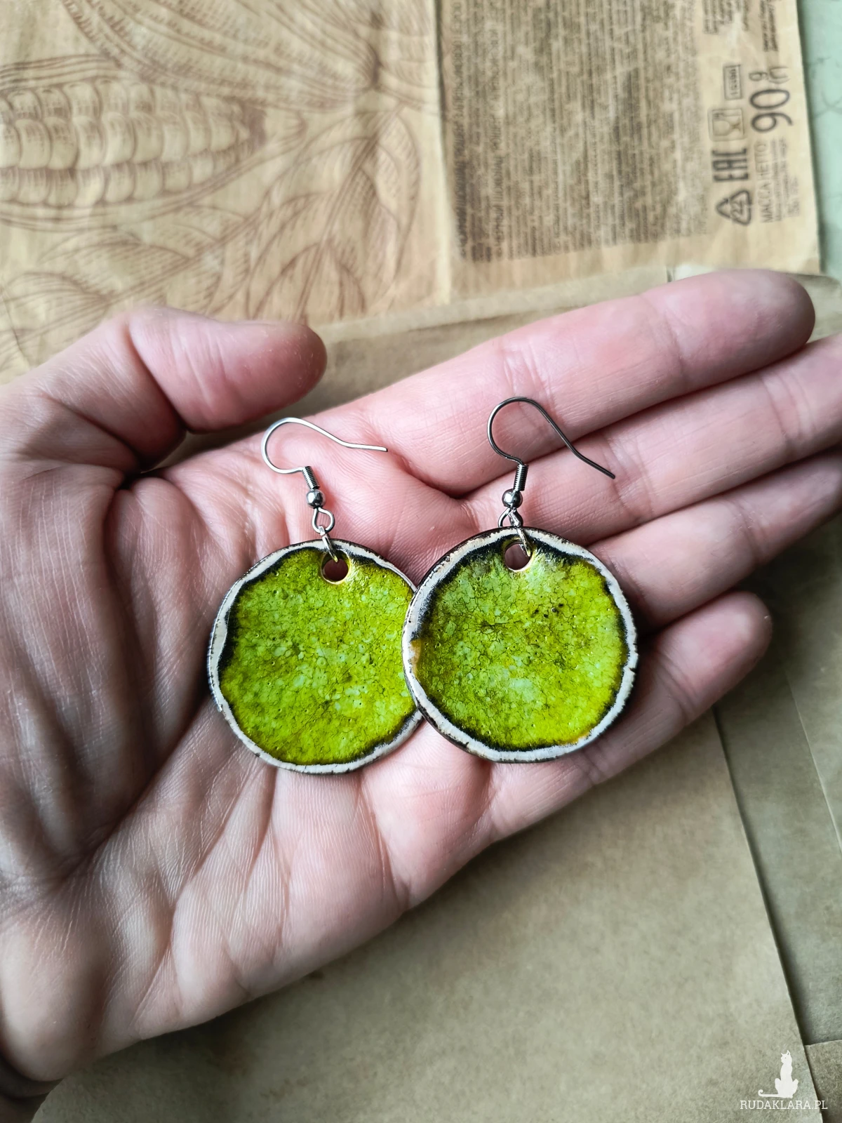 Ręcznie robione kolczyki ceramiczne wykonane z gliny szamotowej. Dla Pań poszukujących unikatowej biżuterii lub jako upominek dla bliskiej nam osoby. Jeśli po potwierdzeniu u artysty okaże się, że produkt jest aktualnie niedostępny, to zostanie wykonana podobna praca na zamówienie w terminie do 2 tygodni.