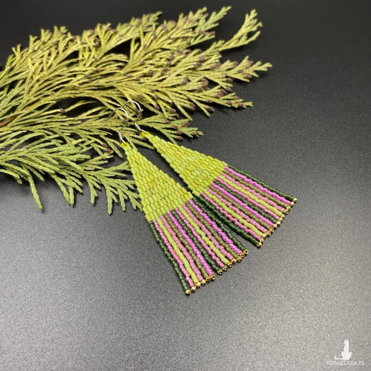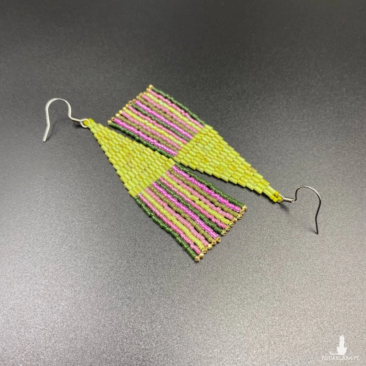 Etniczne kolczyki zostały w 100% utkane ręcznie z małych rurek i koralików Miyuki. Każdą pracę wykonuję bardzo starannie.