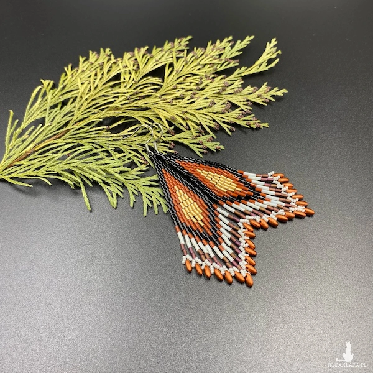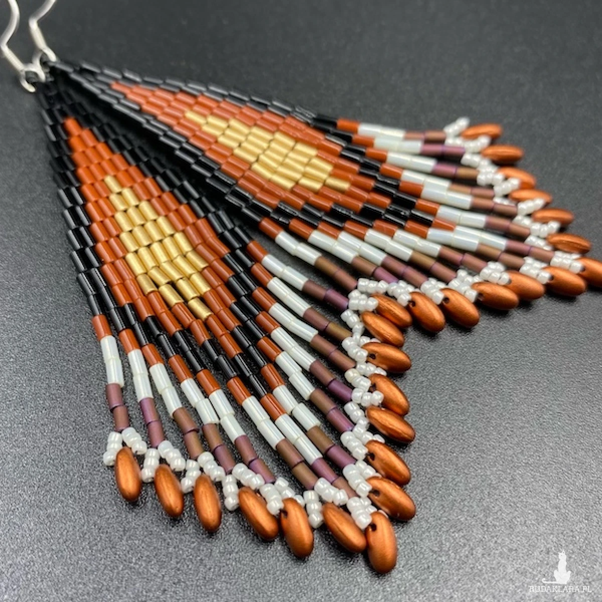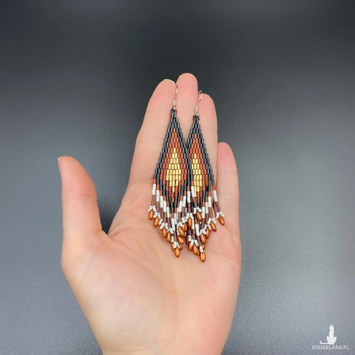 Etniczne kolczyki zostały w 100% utkane ręcznie z małych rurek i koralików Rizo. Każdą pracę wykonuję bardzo starannie.