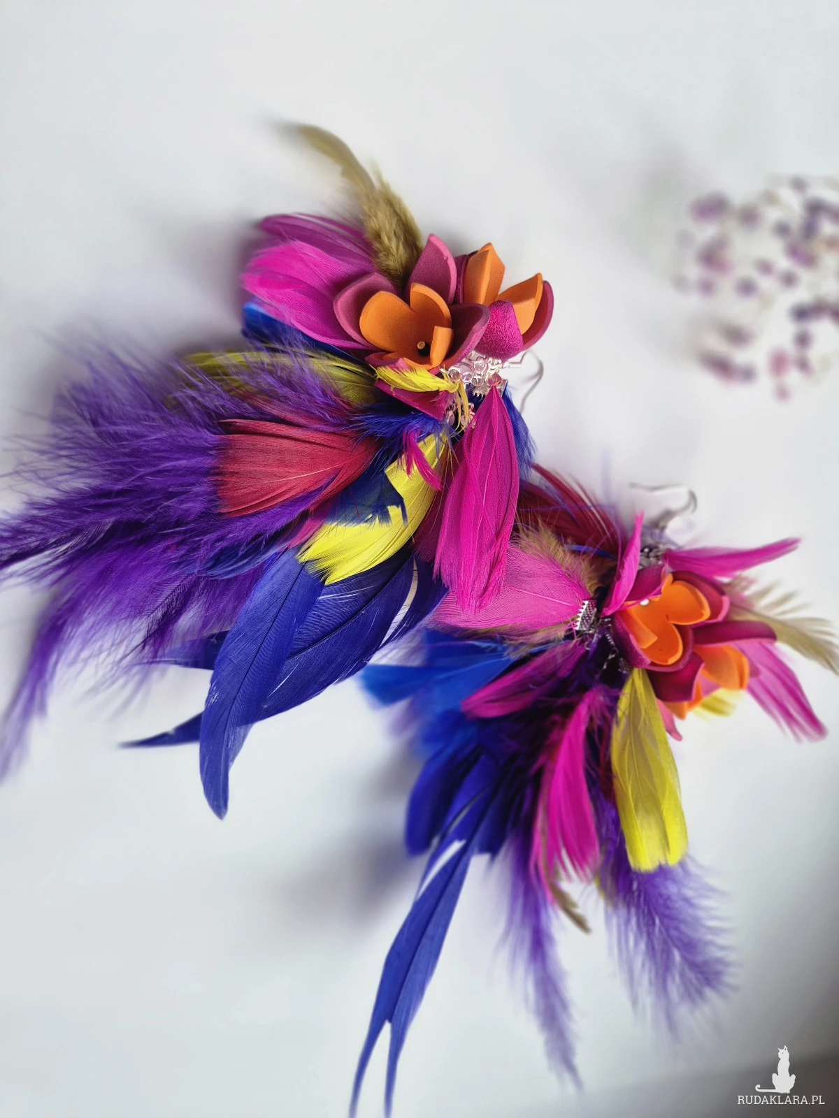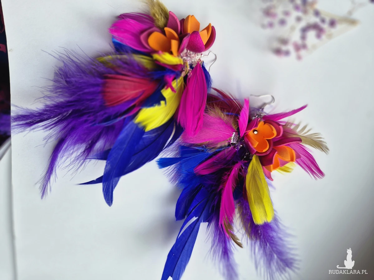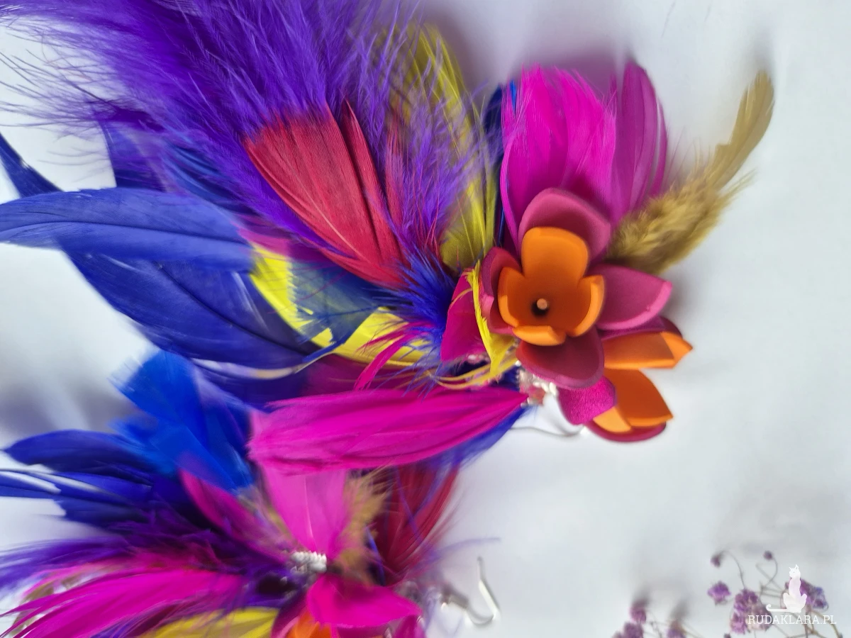 Kolczyki długie kolorowe piora i kwiaty przepiękne leciutkie bardzo zwracają uwagę robione ręcznie