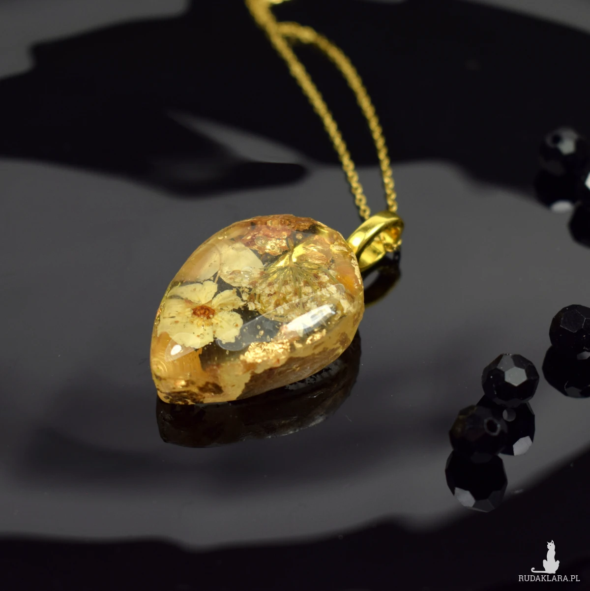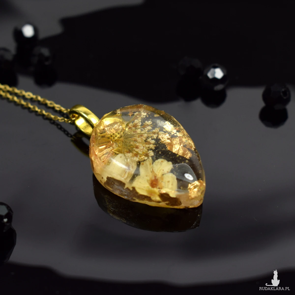 Delikatny, ręcznie wykonany z żywicy , naszyjnik w kształcie łezki, w której zostały