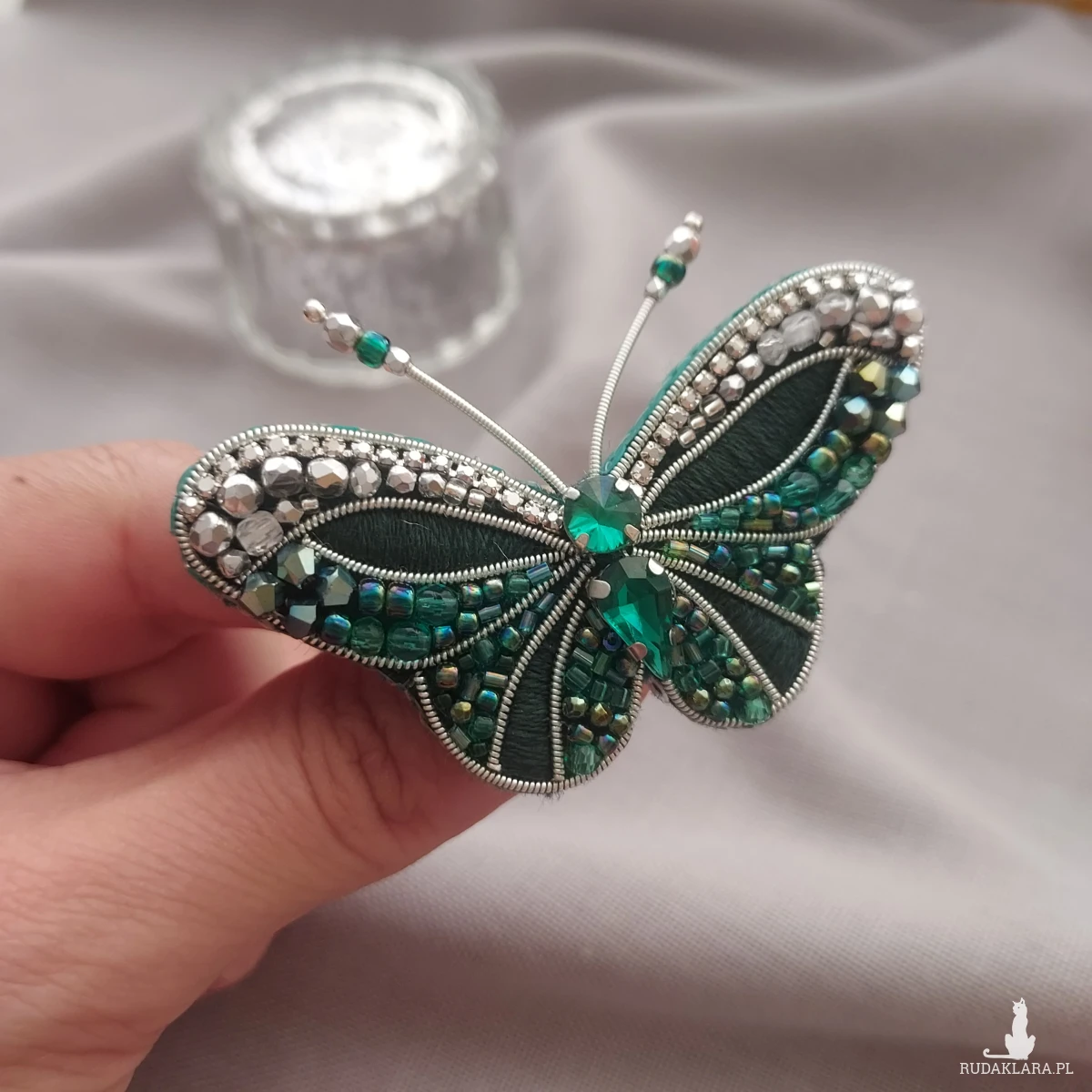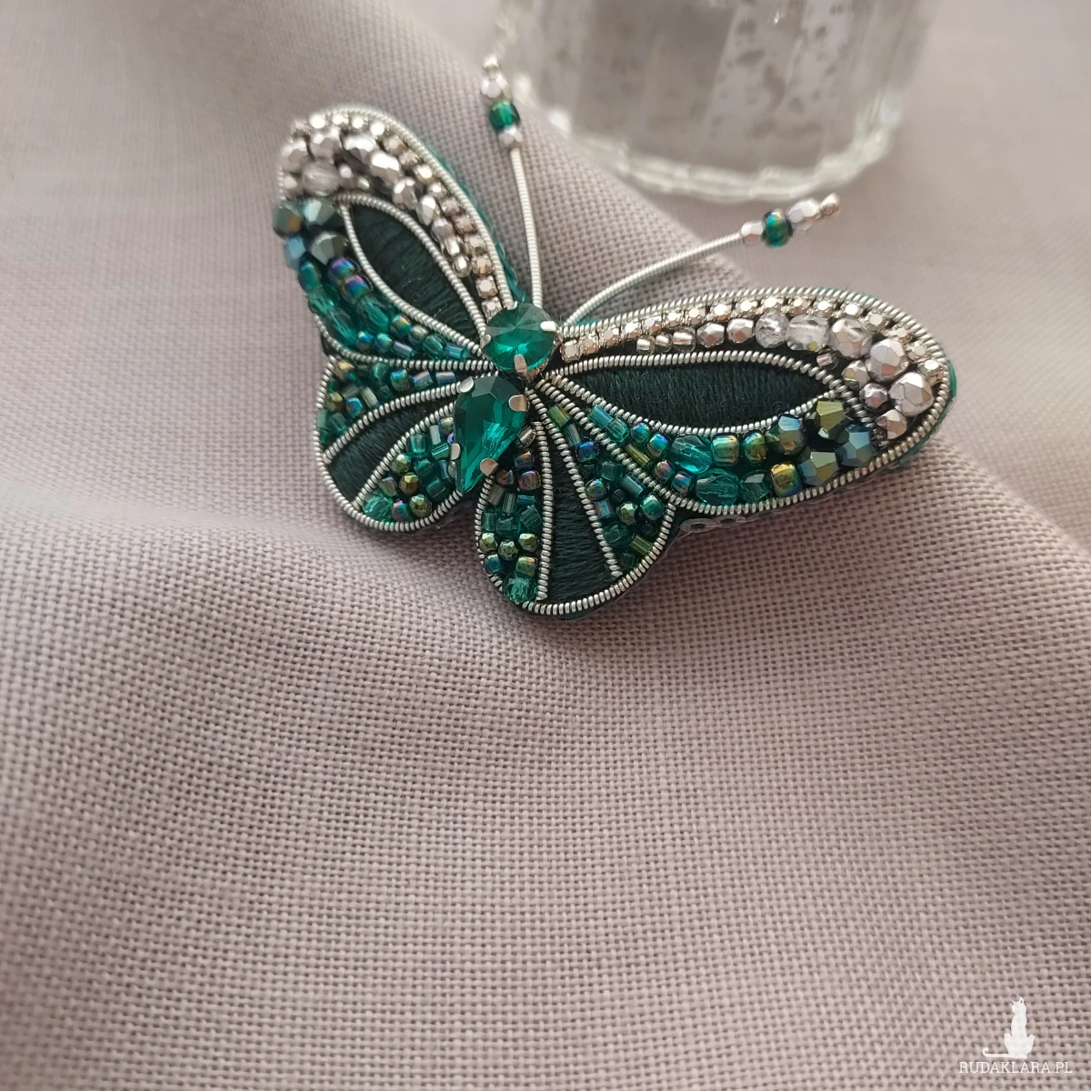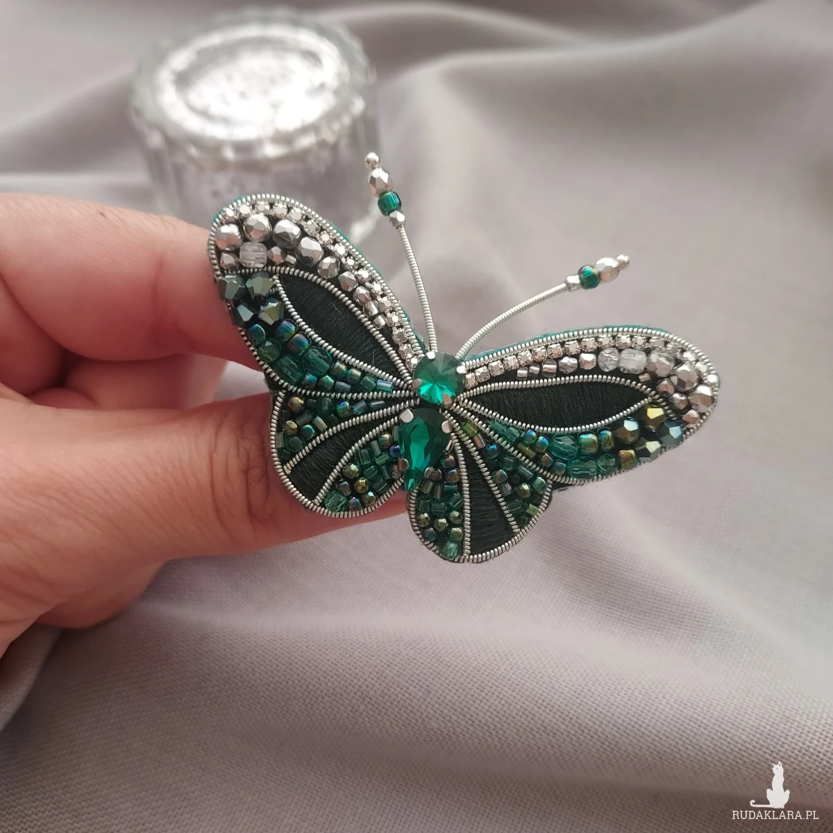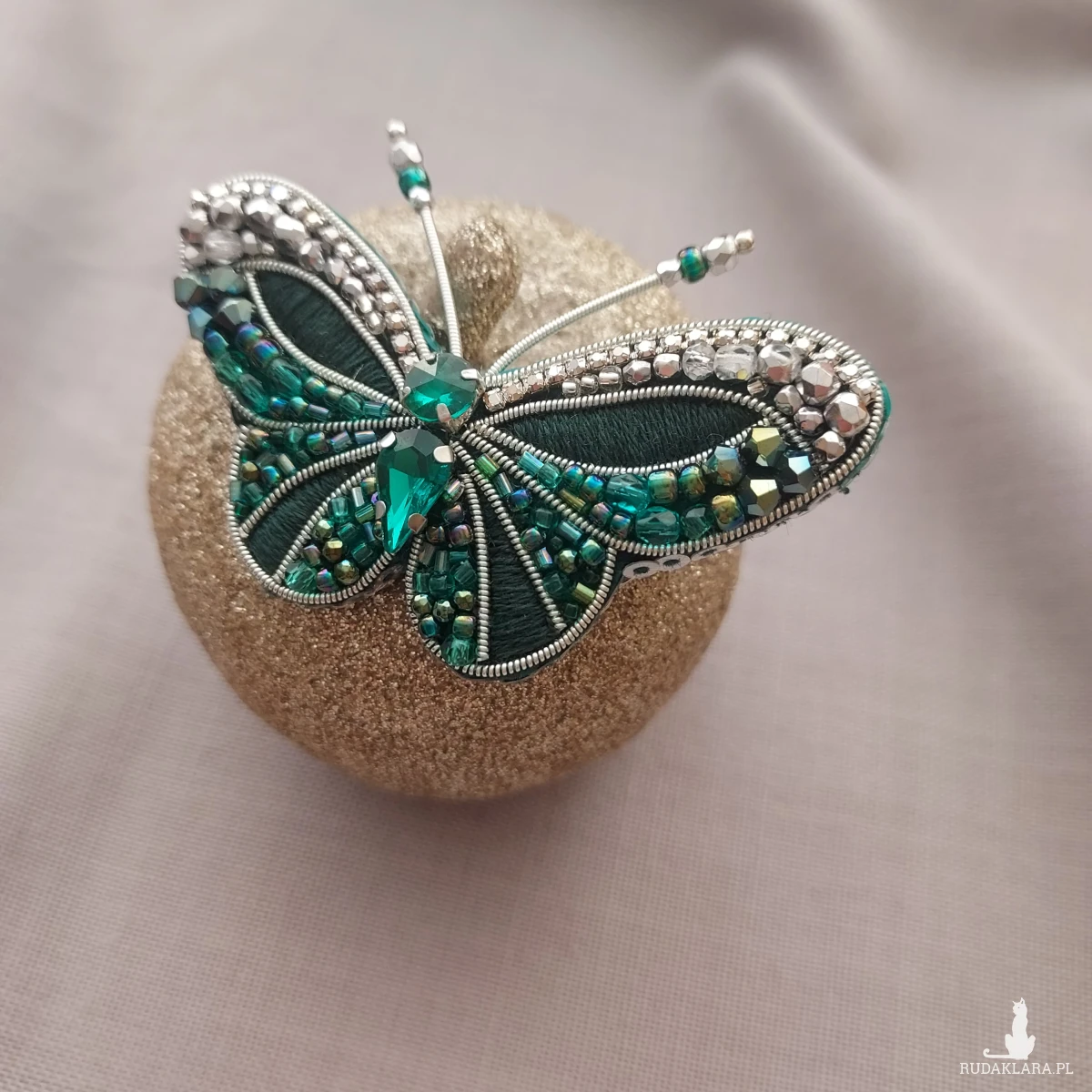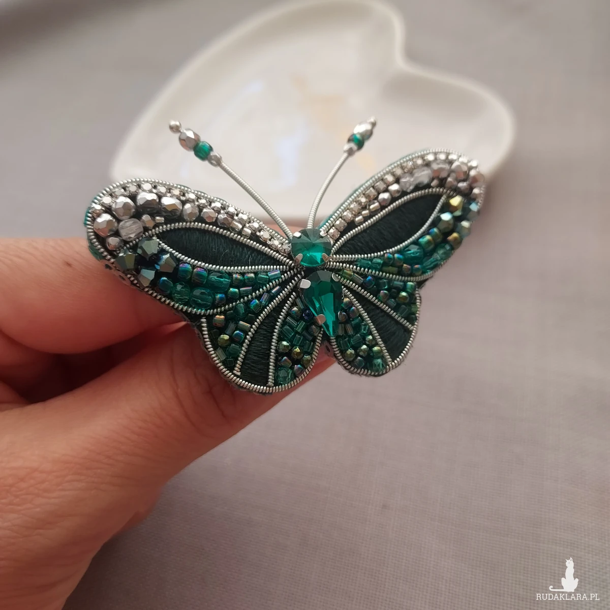 Niepowtarzalna, urocza broszka MOTYL w kolorze szmaragdowo-srebrnym jest świetnym pomysłem na uzupełnienie Twojej letniej stylizacji.