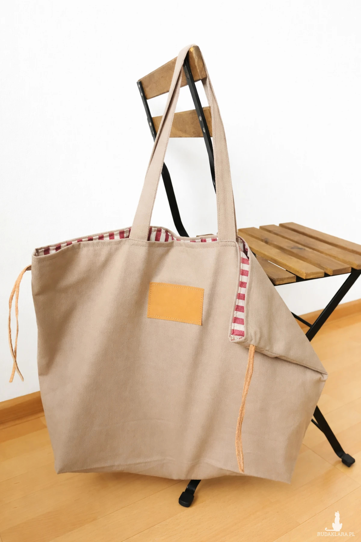 Torba jest duża, pojemna z długimi mocno przyszytymi wzmocnionymi rączkami . Dwie warstwy tkaniny gwarantują, że torba jest mocna i wytrzymała.