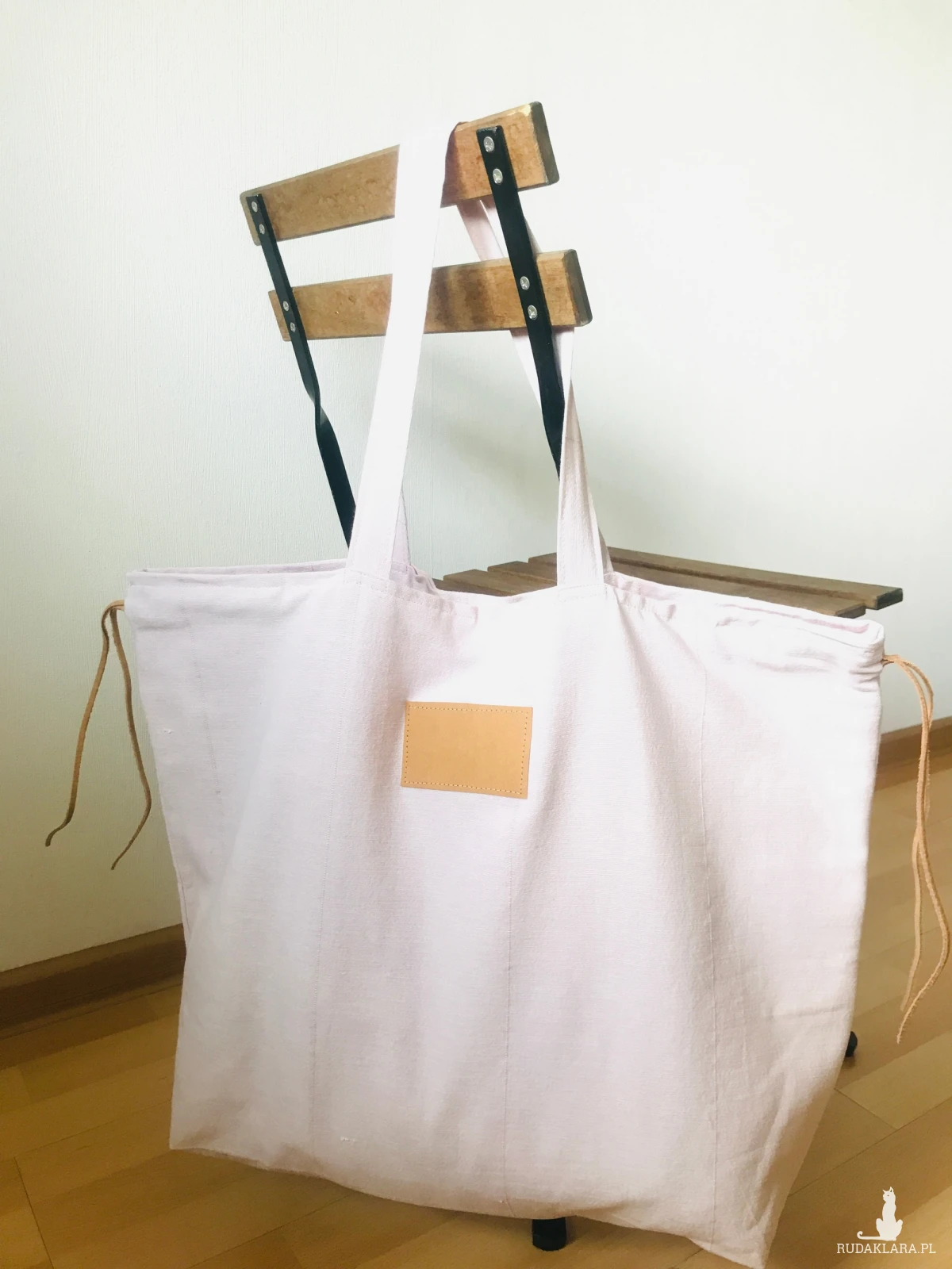 Torba jest duża, pojemna z długimi mocno przyszytymi wzmocnionymi rączkami . Dwie warstwy tkaniny gwarantują, że torba jest mocna i wytrzymała.