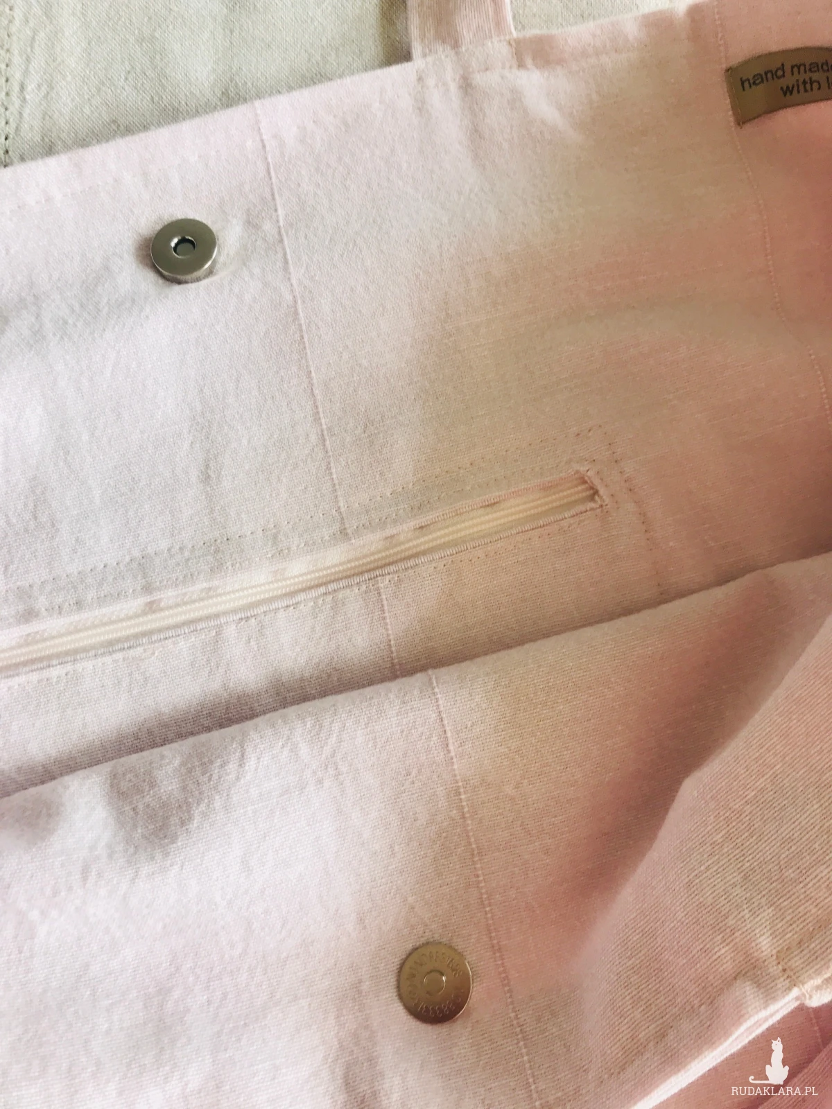 Torba posiada wewnętrzna kieszonkę zapinaną na suwak ,oraz jest zapinana na magnes.