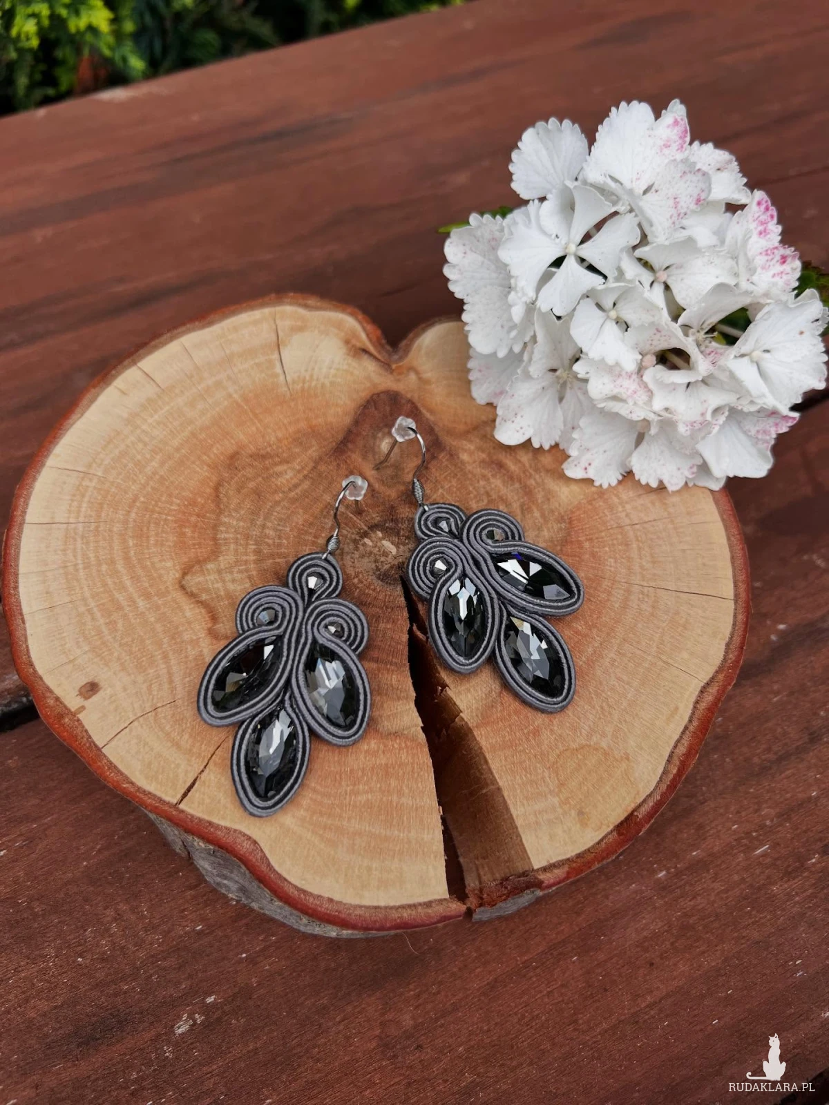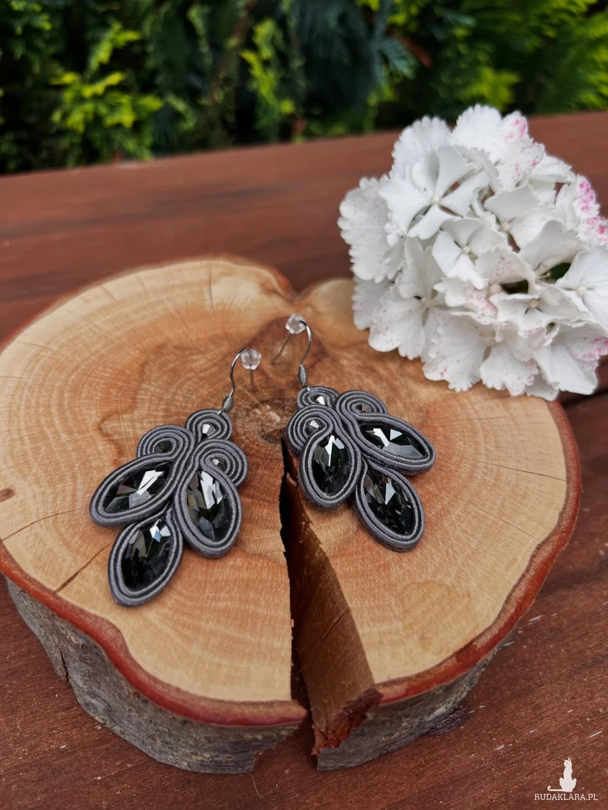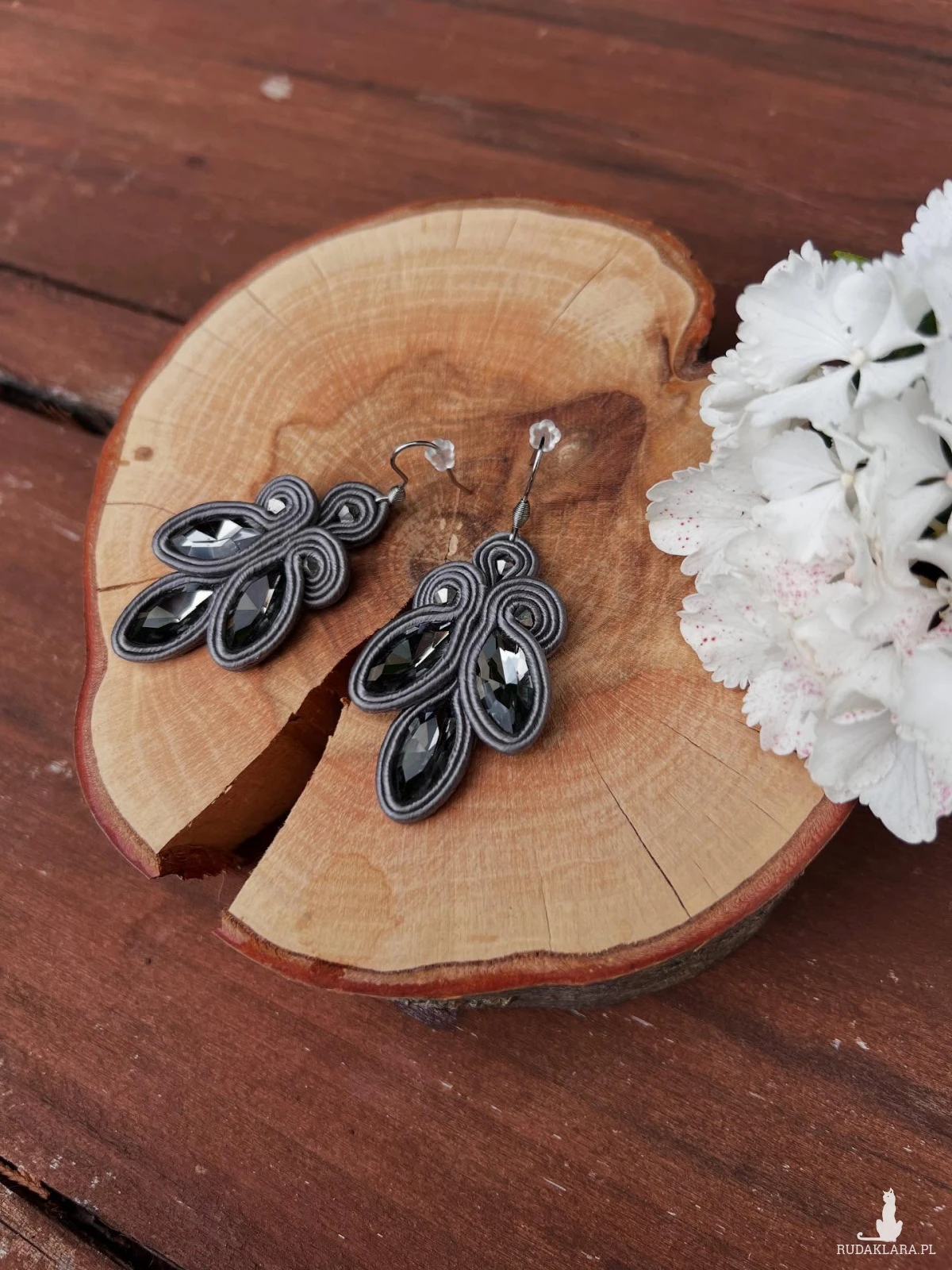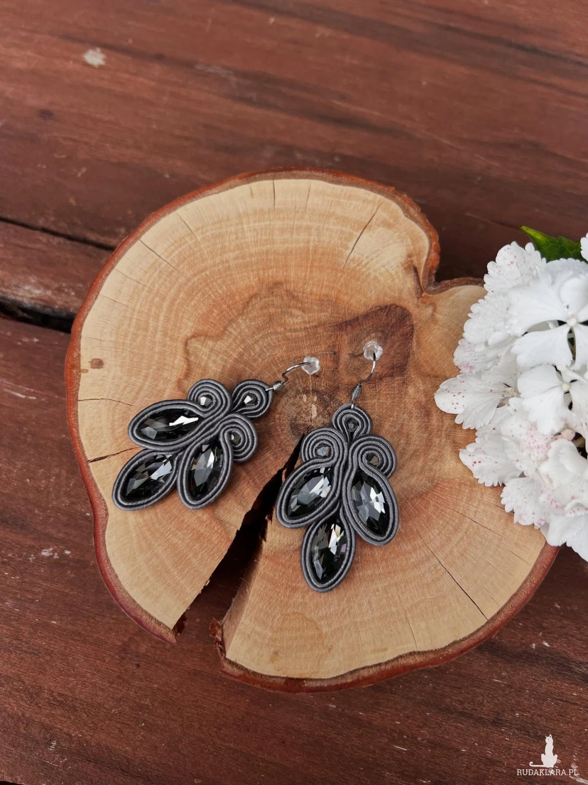 Kryształki przydymione i koraliki szklane w kolorze srebrnym
