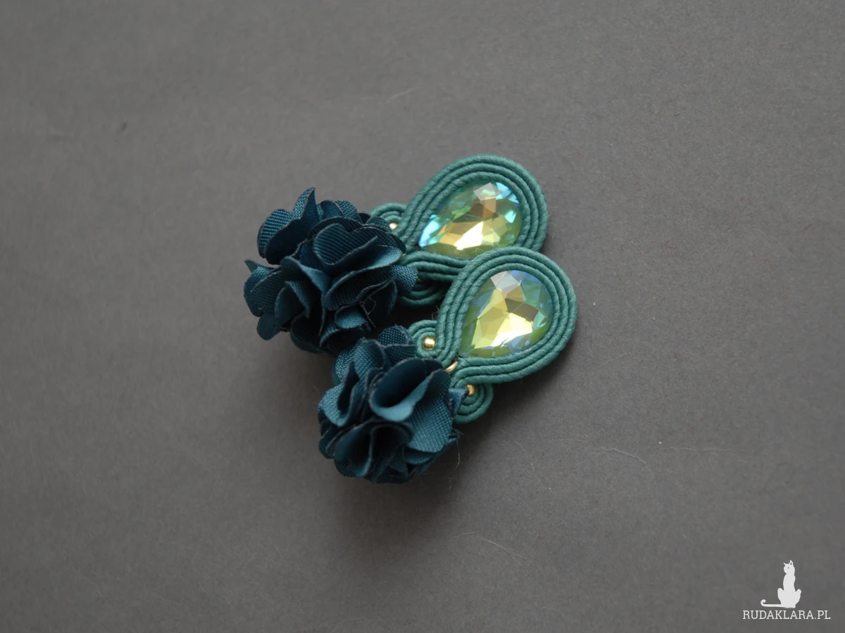 zielone kolczyki lub klipsy sutasz z kwiatkami