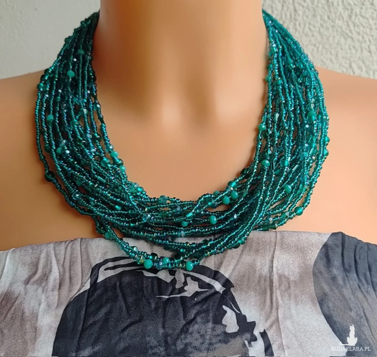 Biżuteria jest elementem dekoracyjnym stroju i należy użytkować ją zgodnie z przeznaczeniem. Elementy metalowe, sznurki syntetyczne mogą zawierać alergeny i uczulać. Sznurki, nici to elementy łatwopalne. Korale szklane , metalowe drobne elementy chronić przed małymi dziećmi.