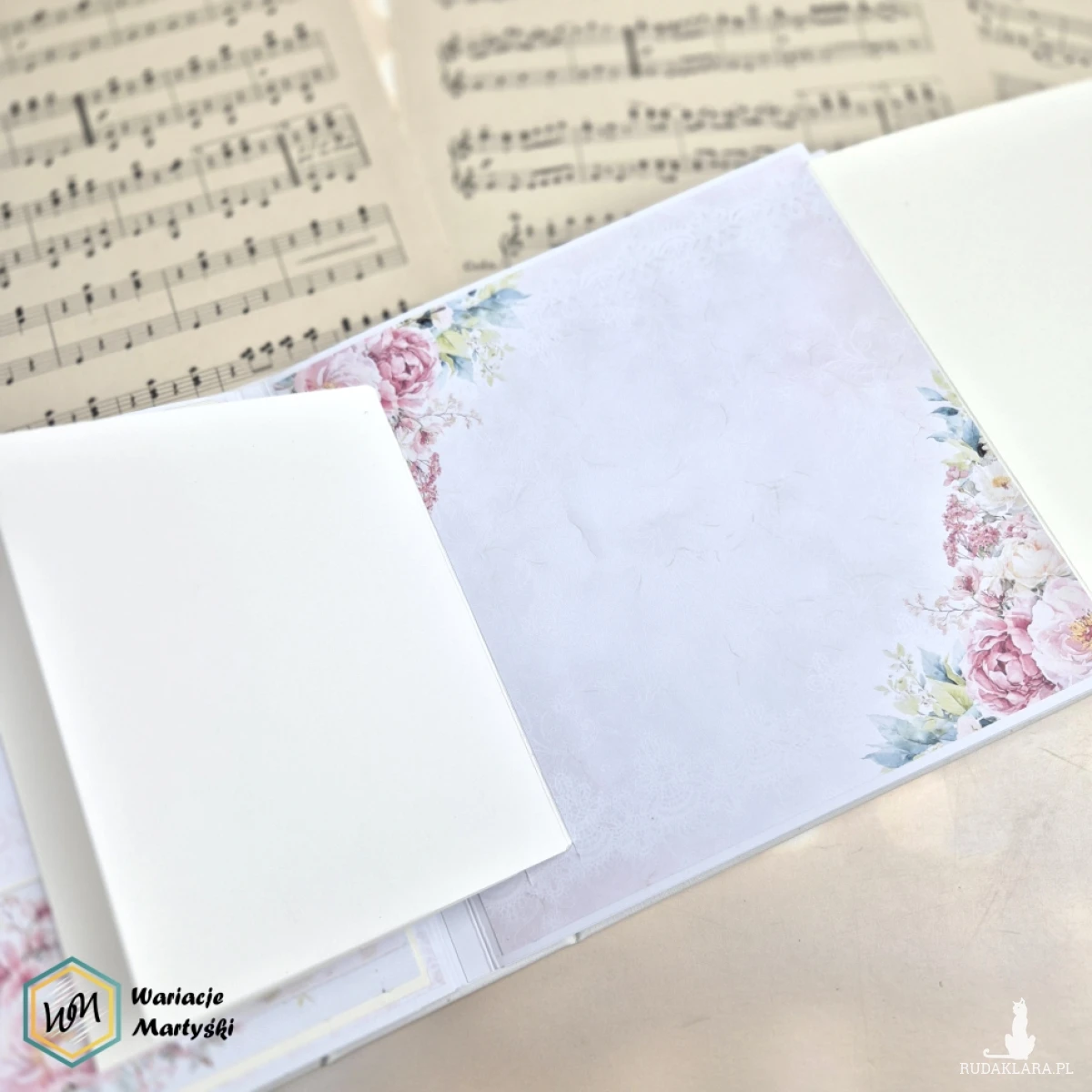 Każdy papier, każda karta i każdy detal zostały dobrane tak, by tworzyły jedną historię – cichą, elegancką i pełną emocji. Pudełko nie tylko chroni album, ale też podkreśla jego wyjątkowy charakter – to gotowy prezent, który nie wymaga już niczego więcej.