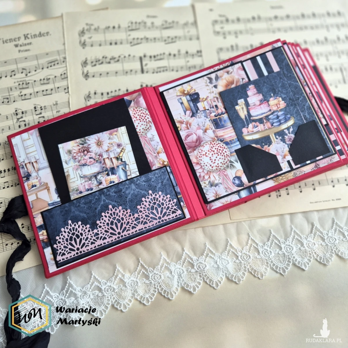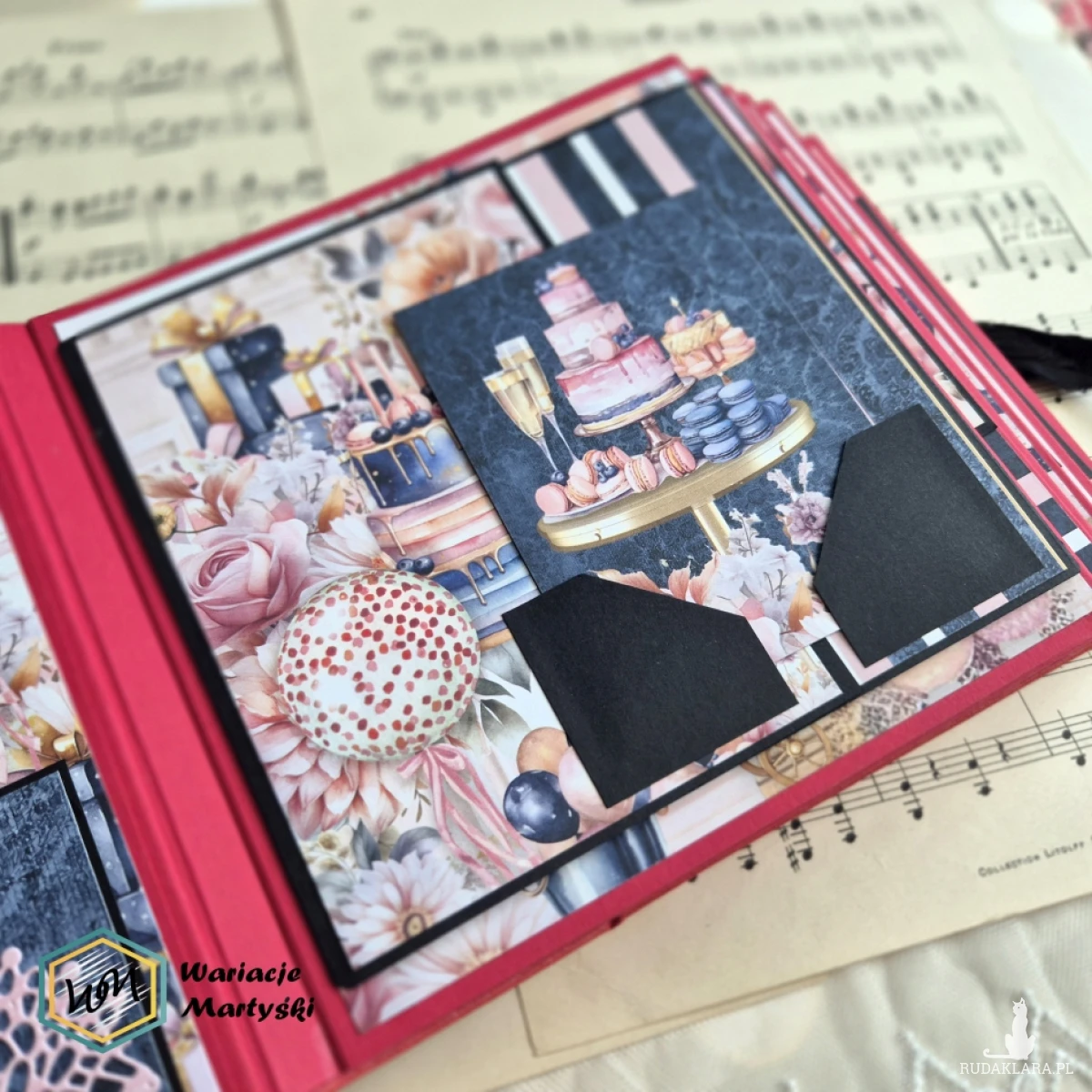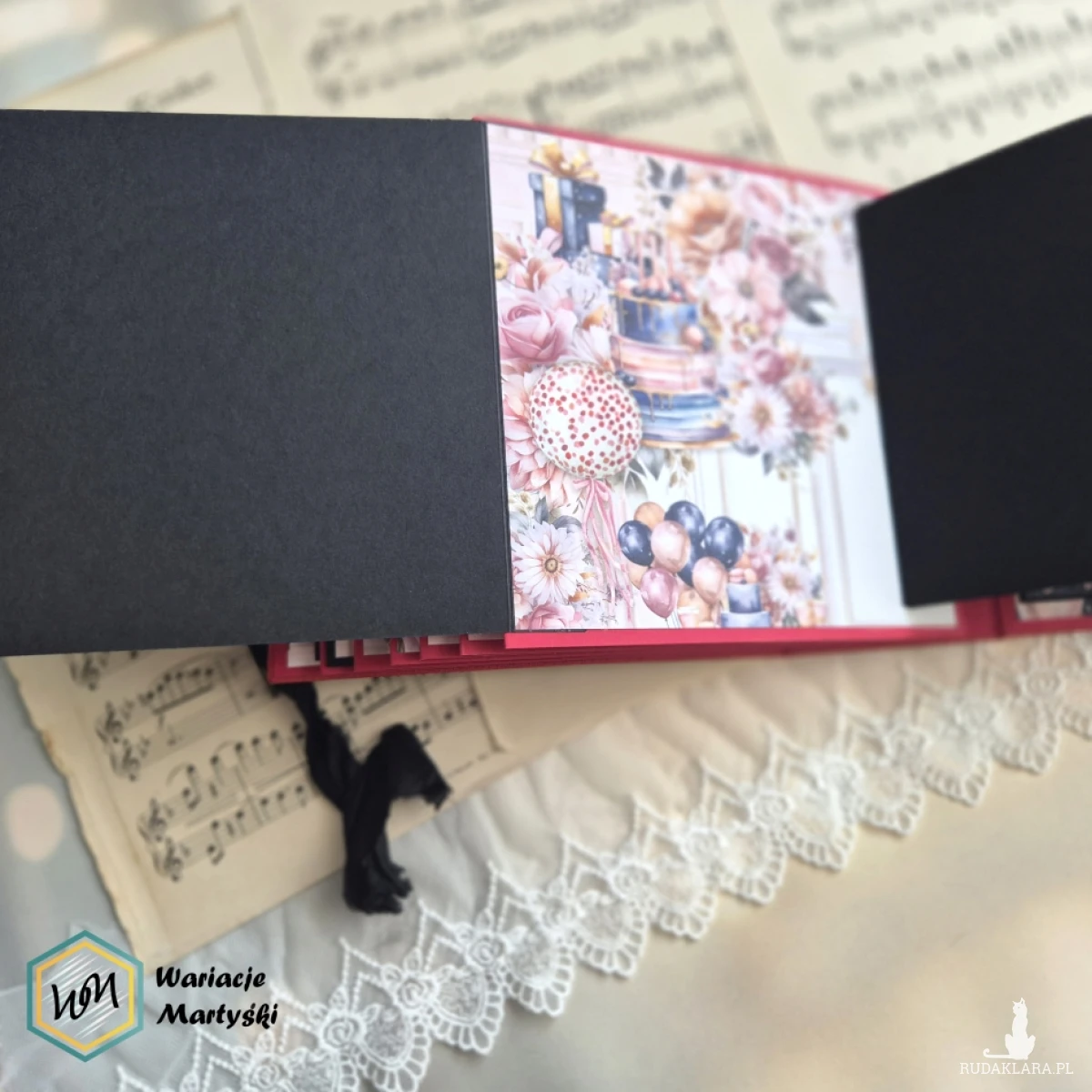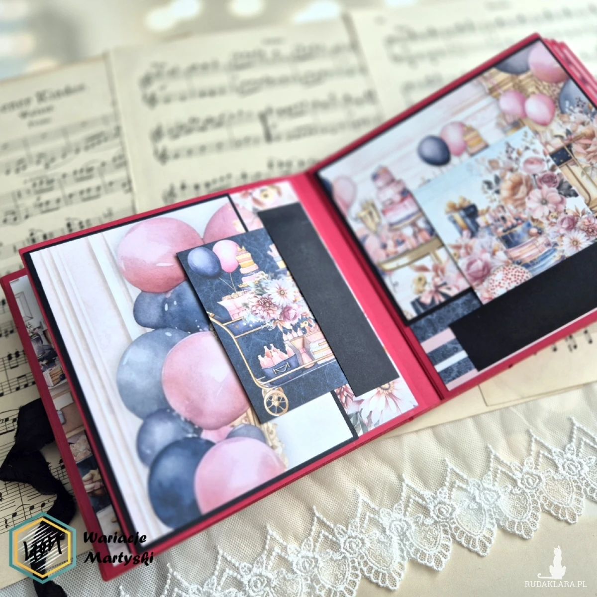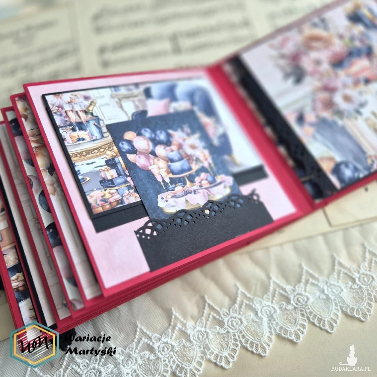 Oto album, który stanie się prawdziwym skarbcem wspomnień — piękny, ręcznie wykonany, z dbałością o każdy detal. Jego bogata, żywa kolorystyka zachwyca od pierwszego spojrzenia — intensywne róże, purpury, złociste tony i brokatowe akcenty łączą się, tworząc niesamowicie energetyczną i elegancką całość.