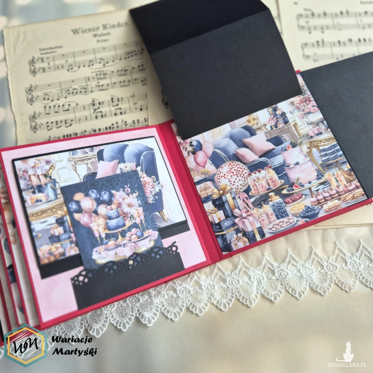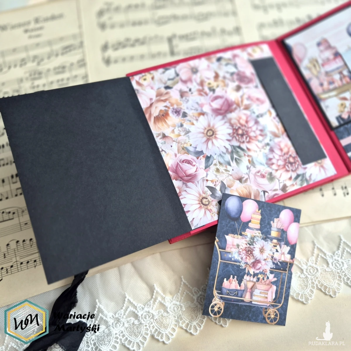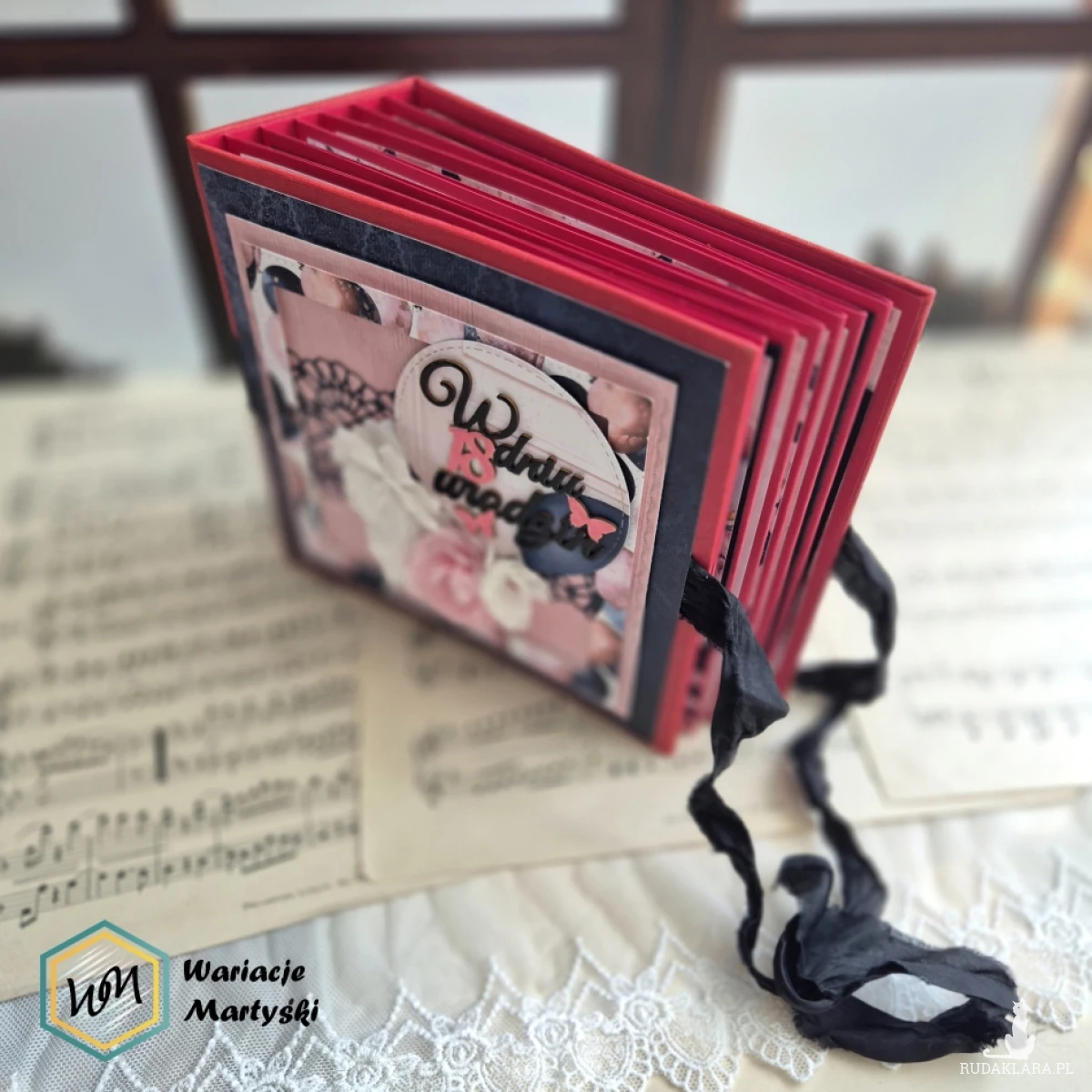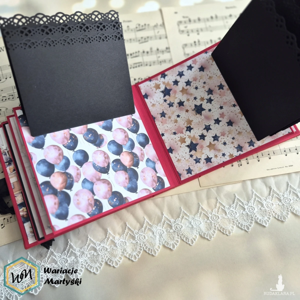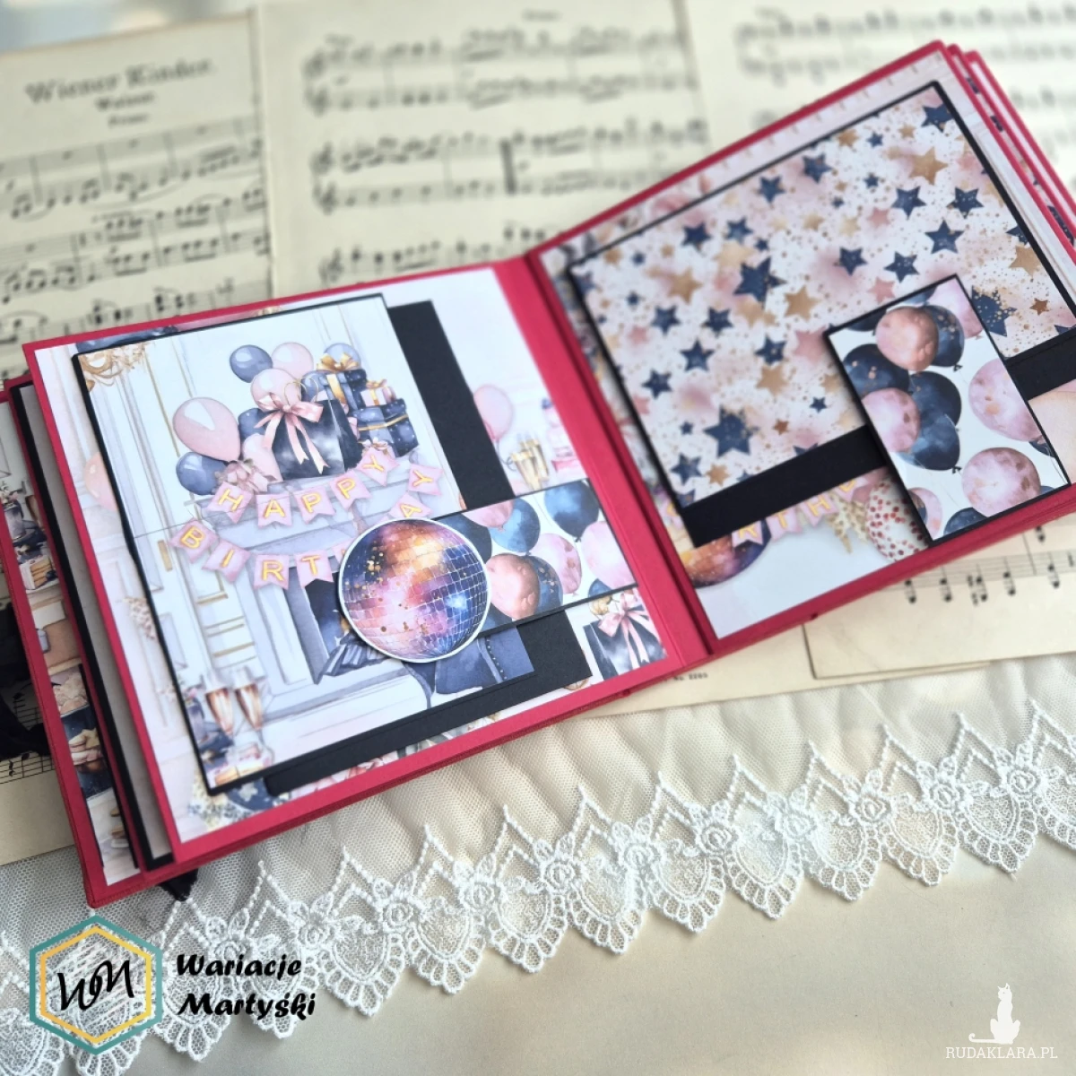 Oto album, który stanie się prawdziwym skarbcem wspomnień — piękny, ręcznie wykonany, z dbałością o każdy detal. Jego bogata, żywa kolorystyka zachwyca od pierwszego spojrzenia — intensywne róże, purpury, złociste tony i brokatowe akcenty łączą się, tworząc niesamowicie energetyczną i elegancką całość.