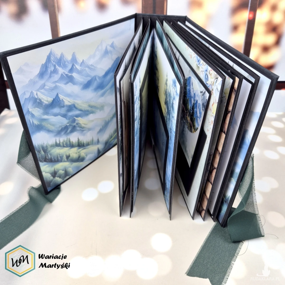 Okładka w naturalnym, górskim klimacie i czarne karty wewnątrz tworzą wyjątkową oprawę dla zdjęć. Czerń pięknie podkreśla kolory krajobrazów – błękit nieba, zieleń lasów, biel śniegu czy ciepłe barwy zachodu słońca.