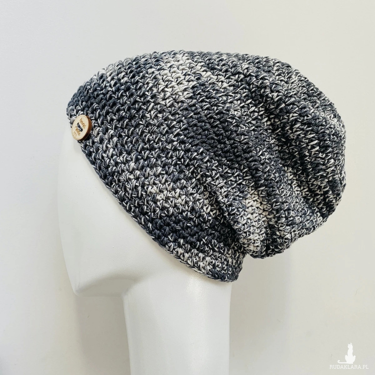 Czapkę wykonałam z wysokiej jakości włóczki bawełniano-akrylowej, która zapewnia wygodę noszenia przez cały dzień.