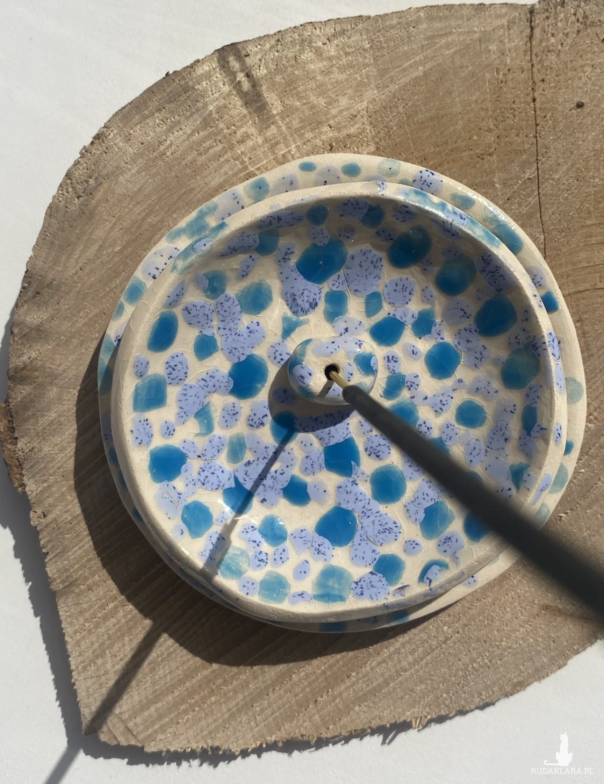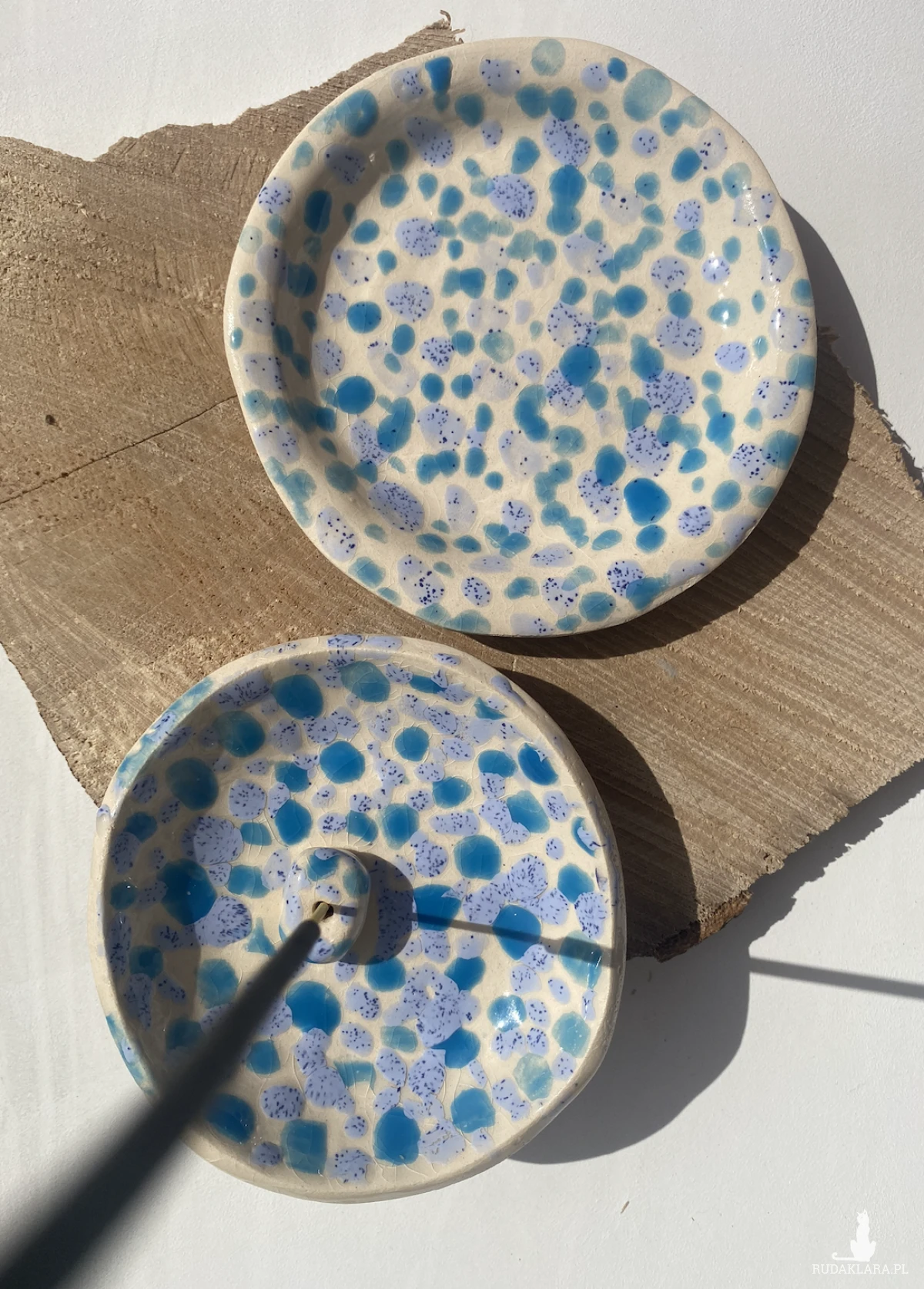 Palolopuli rękodzieło . Ceramiczna postaweczka na kadzidełko wraz z talerzykiem na skarby.