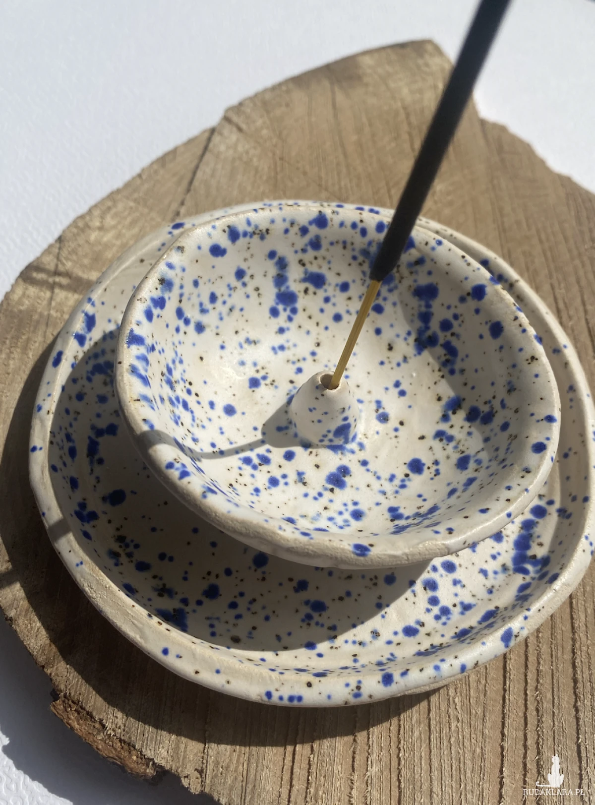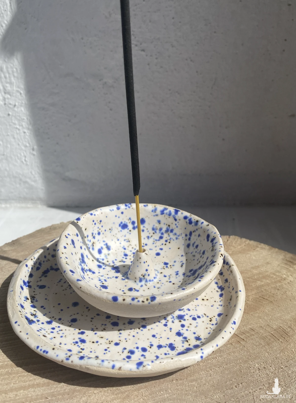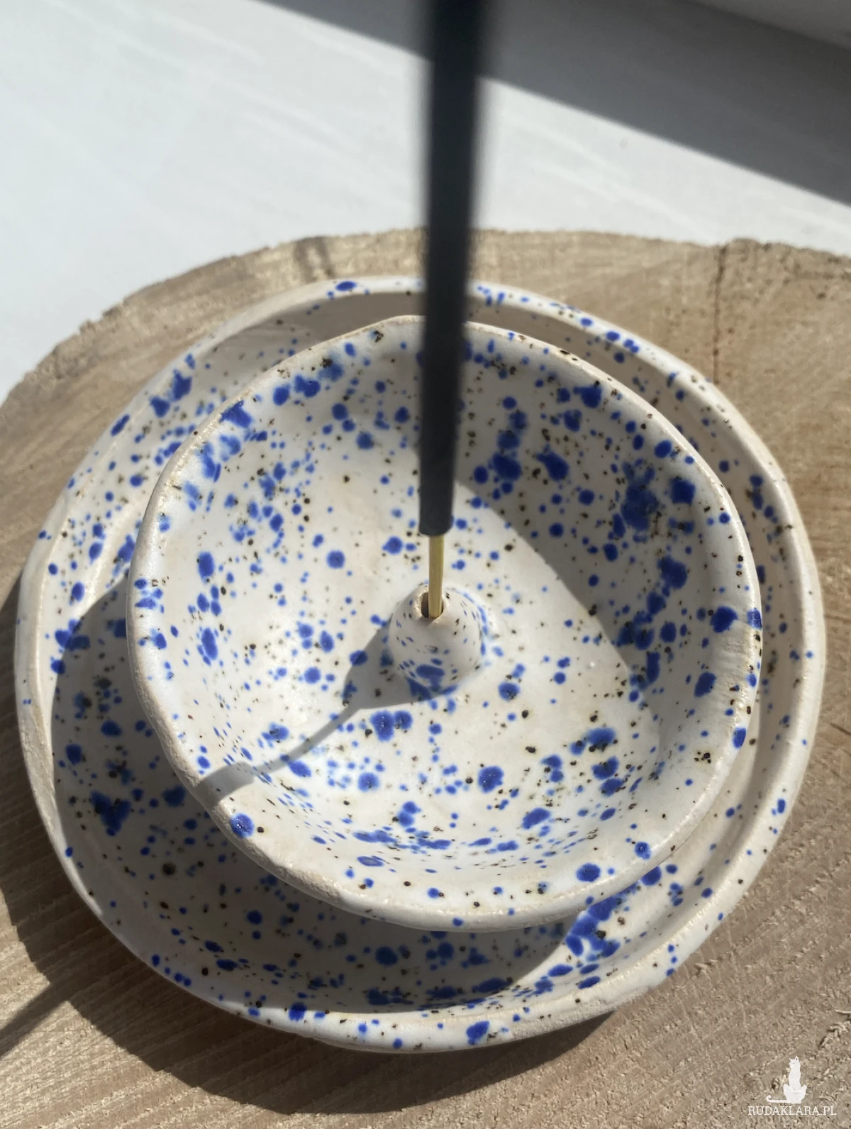 Palolopuli rękodzieło . Ceramiczna postaweczka na kadzidełko wraz z talerzykiem na skarby.