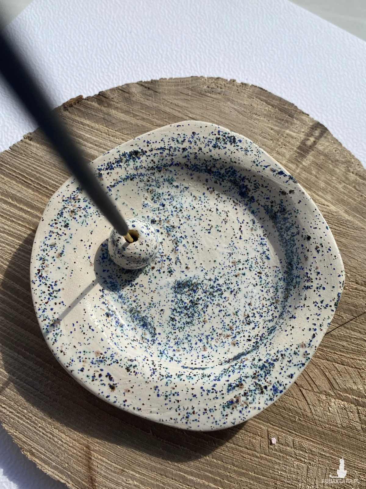 Ceramiczna podstaweczka na kadzidełko. Szkliwiona wewnętrznie.