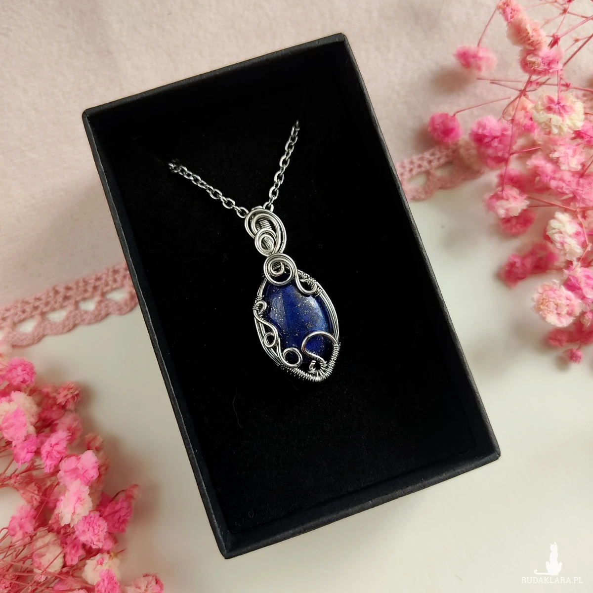 Naszyjnik z Lapis Lazuli wykonany metodą wire wrapping to wyjątkowy dodatek. Naturalny kamień o głębokim, niebieskim kolorze zdobi delikatnie oplataną, misterną oprawę ze stali chirurgicznej. Biżuteria stworzona z myślą o osobach, które cenią sobie mistyczne inspiracje, unikalne wzory i symboliczne znaczenie kamieni naturalnych.