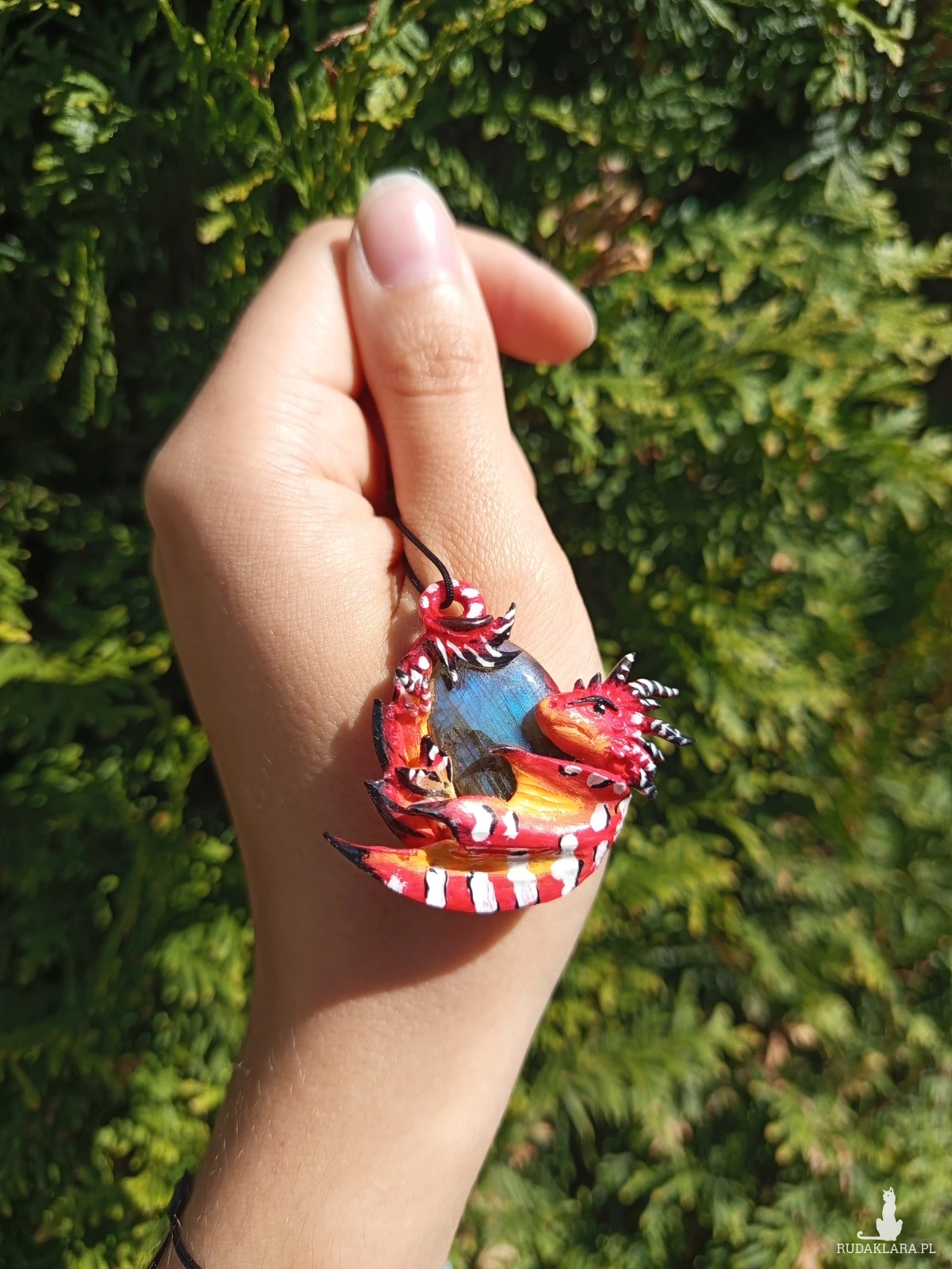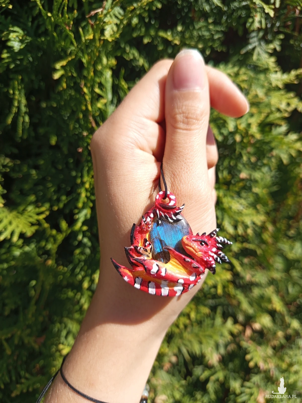 Naszyjnik małego smoka z labradorytem, idealny na prezent, magia fantasty