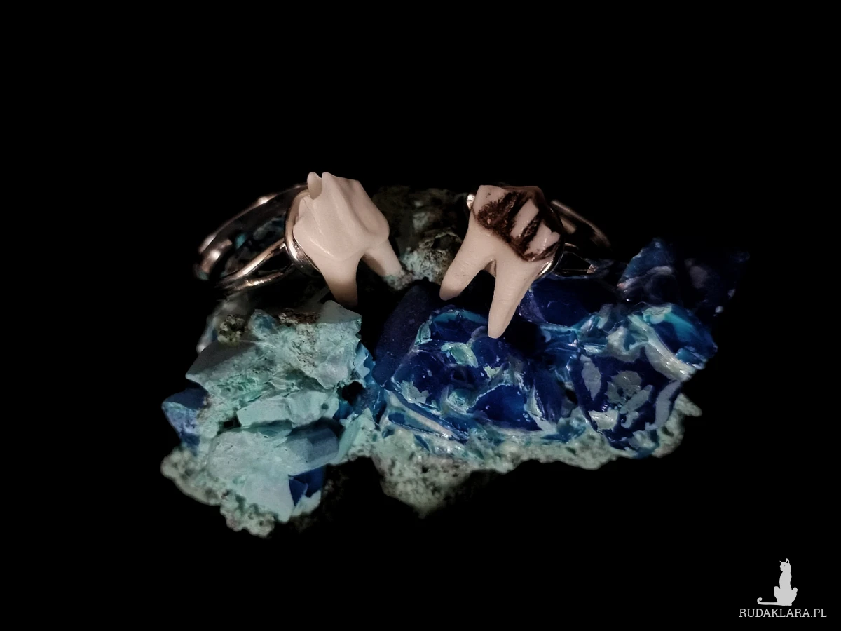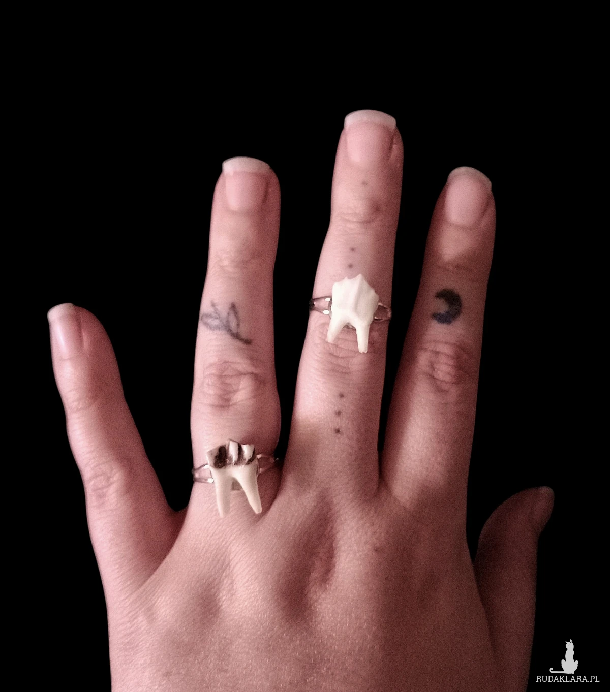 Ręcznie wykonane pierścionki z ząbkami (sarna i owca).