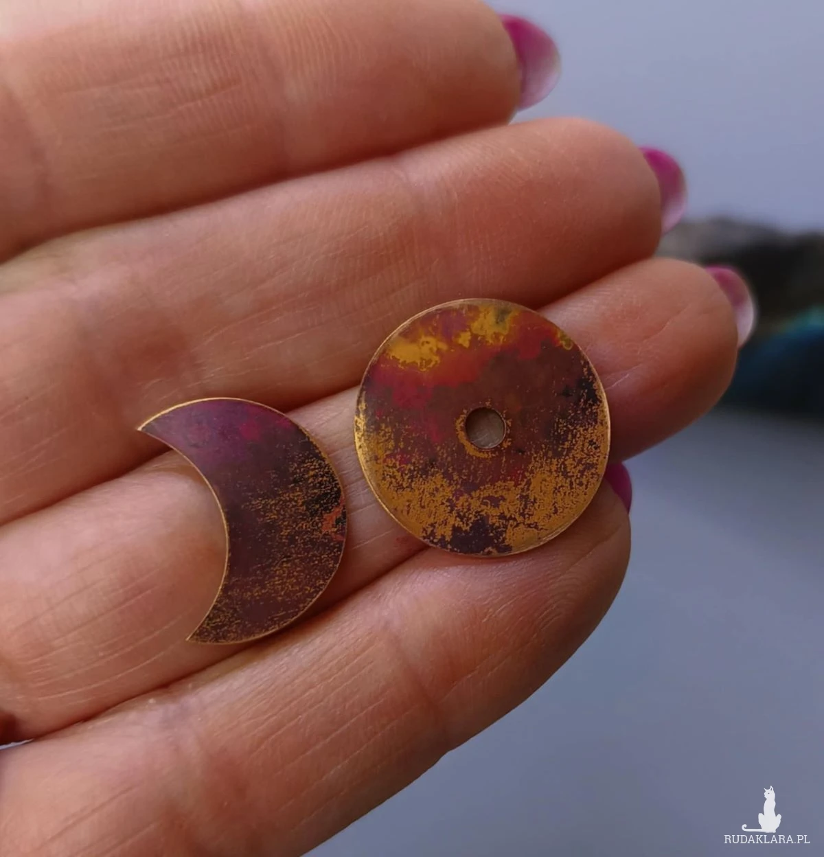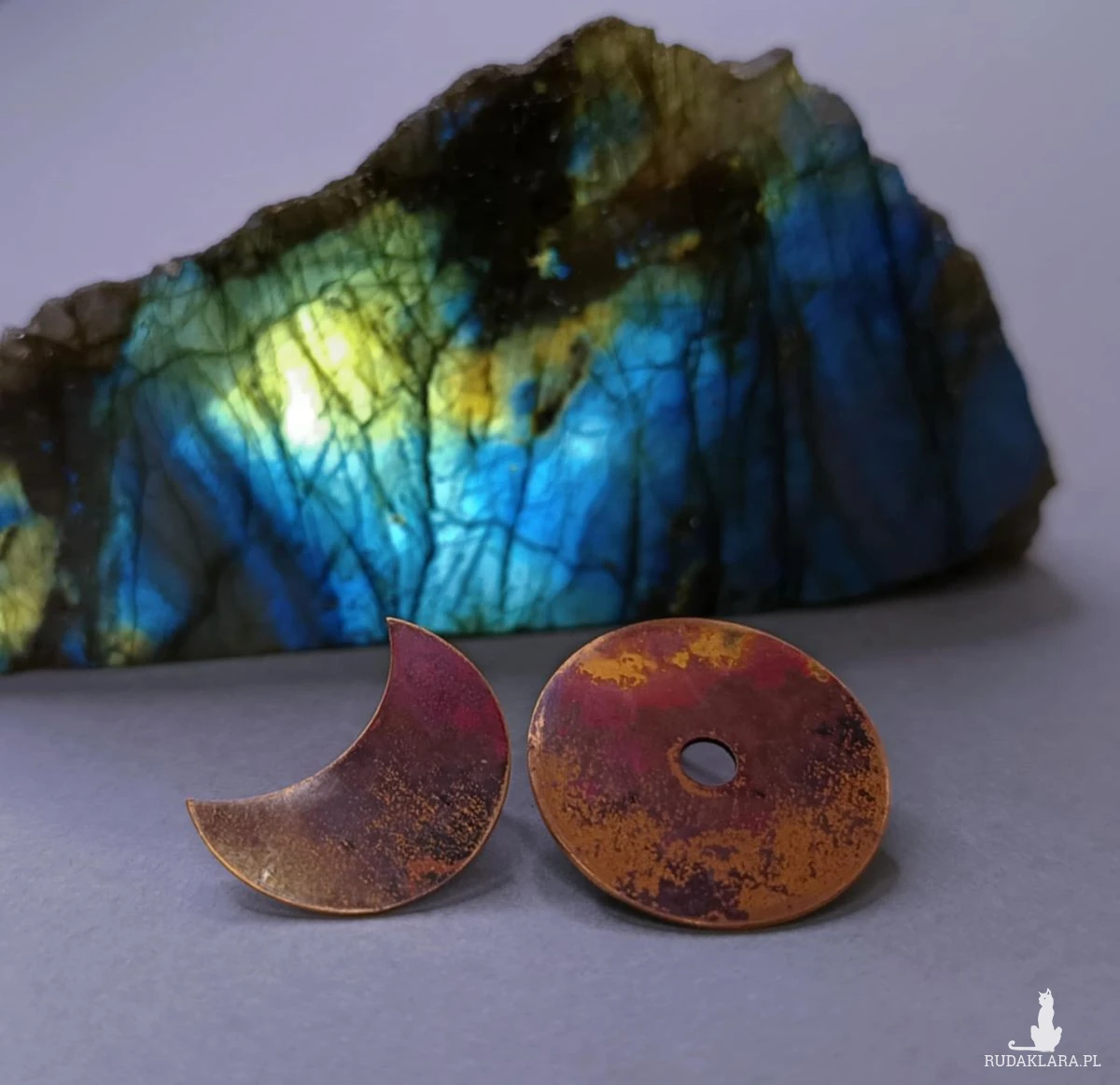 Balans, kolczyki sztyfty równoważące energię męską i żeńską. Dla tych, którzy wiedzą, jak jest to ważne. Kolczyki wykonane od podstaw ręcznie z miedzi. Wielkość kolczyków 15 mm. Sztyft ze srebrnego drutu. Kolczyki wysyłam w eleganckim pudełeczku. Zapraszam.