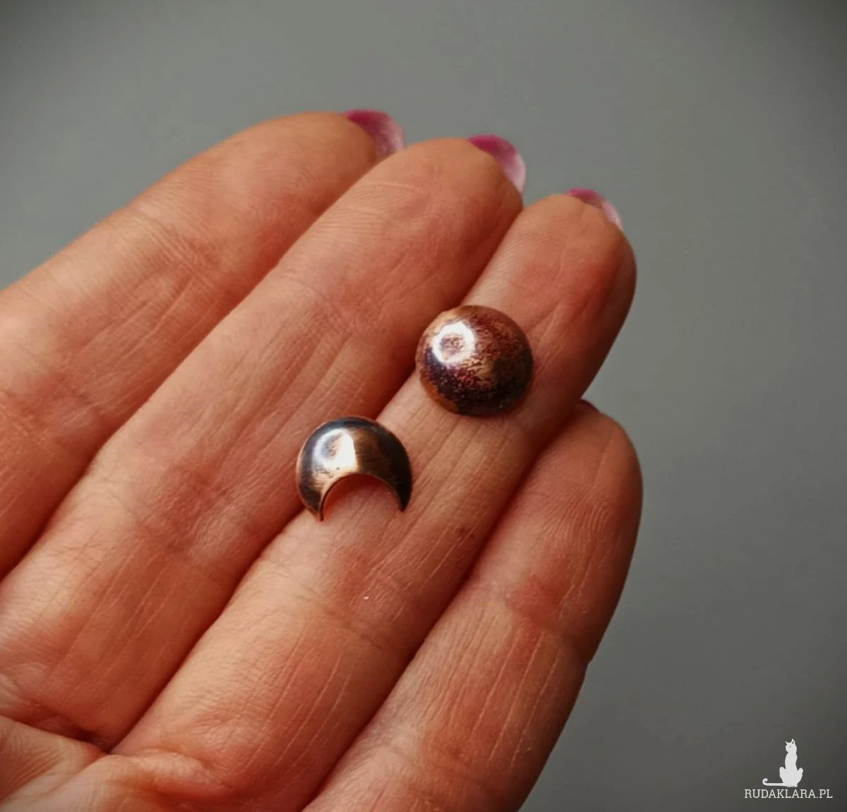 Balans, kolczyki sztyfty równoważące energię męską i żeńską. Dla tych, którzy wiedzą, jak jest to ważne. Kolczyki wykonane od podstaw ręcznie z miedzi. Wielkość kolczyków 10 mm. Sztyft ze srebrnego drutu. Kolczyki wysyłam w eleganckim pudełeczku. Zapraszam.