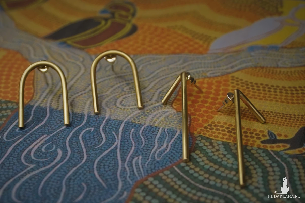 Unikatowe, minimalistyczne, kolczyki sztyfty z mosiądzu, wykonane od podstaw ręcznie, inspirowane symbolami Aborygenów. Wielkość kolczyków wsyokość 29 mm, szerokość 17mm. Kolczyki wysyłam w eleganckim pudełeczku w kolorze grafitowym.