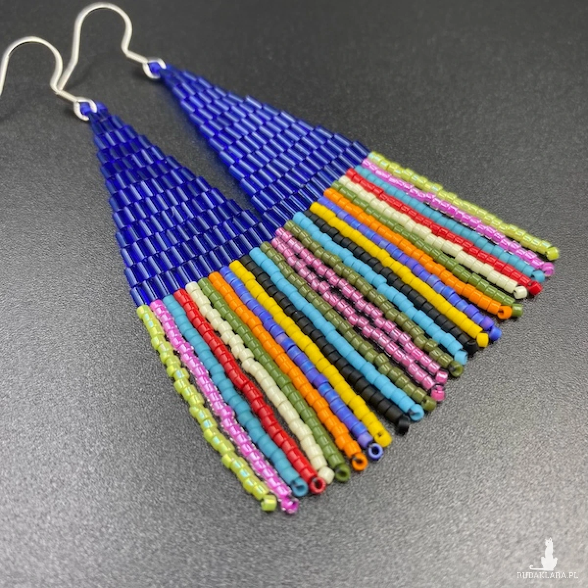Etniczne kolczyki zostały w 100% utkane ręcznie z małych rurek i koralików Miyuki. Każdą pracę wykonuję bardzo starannie.