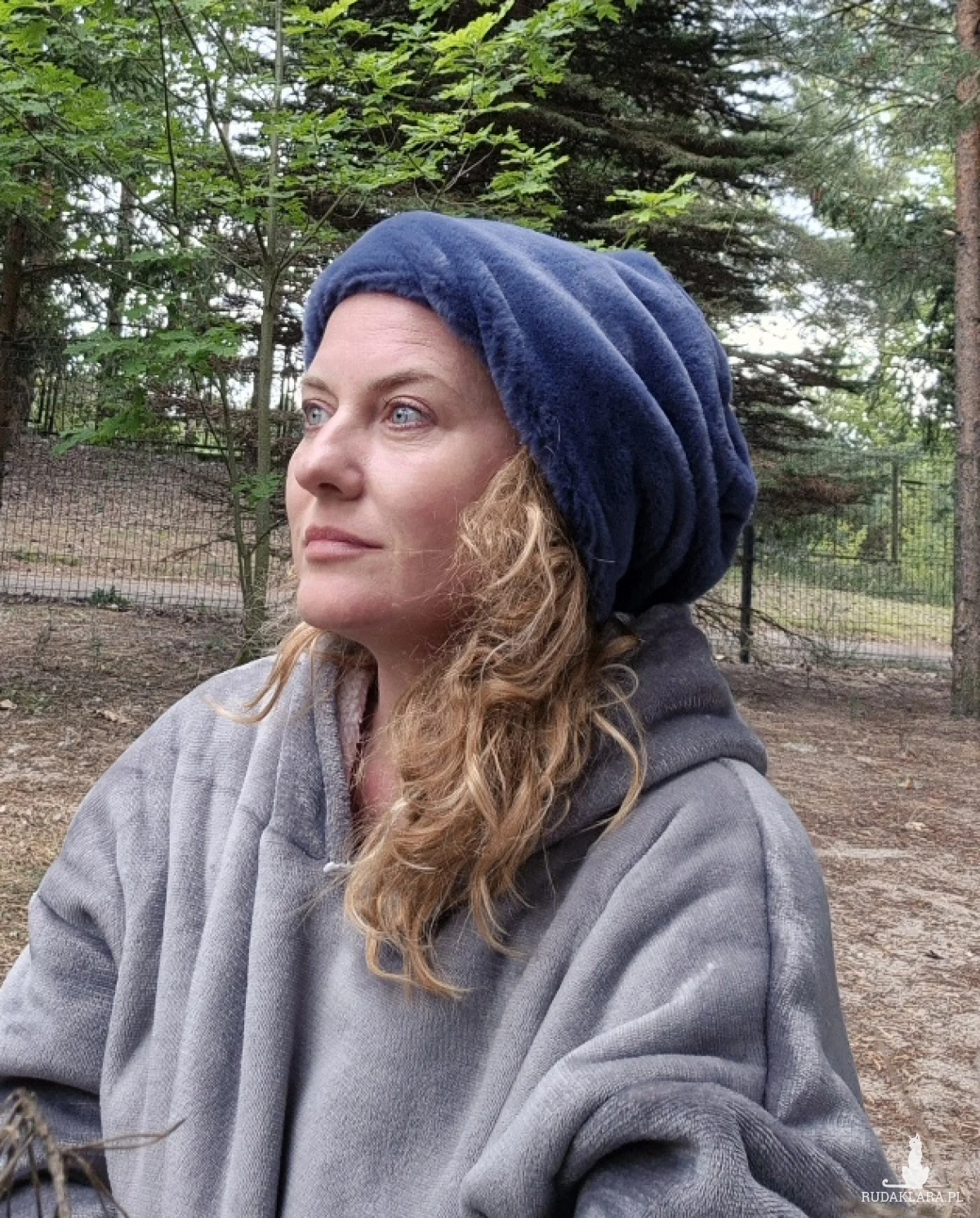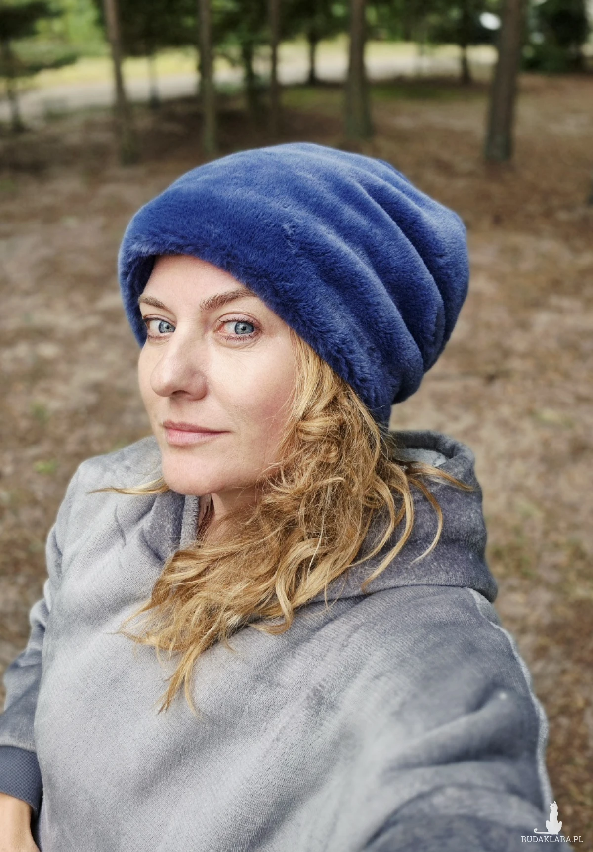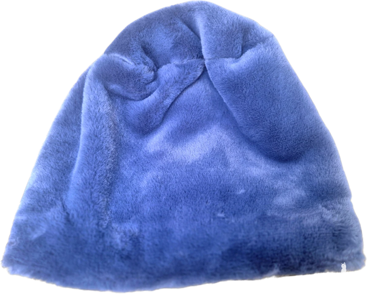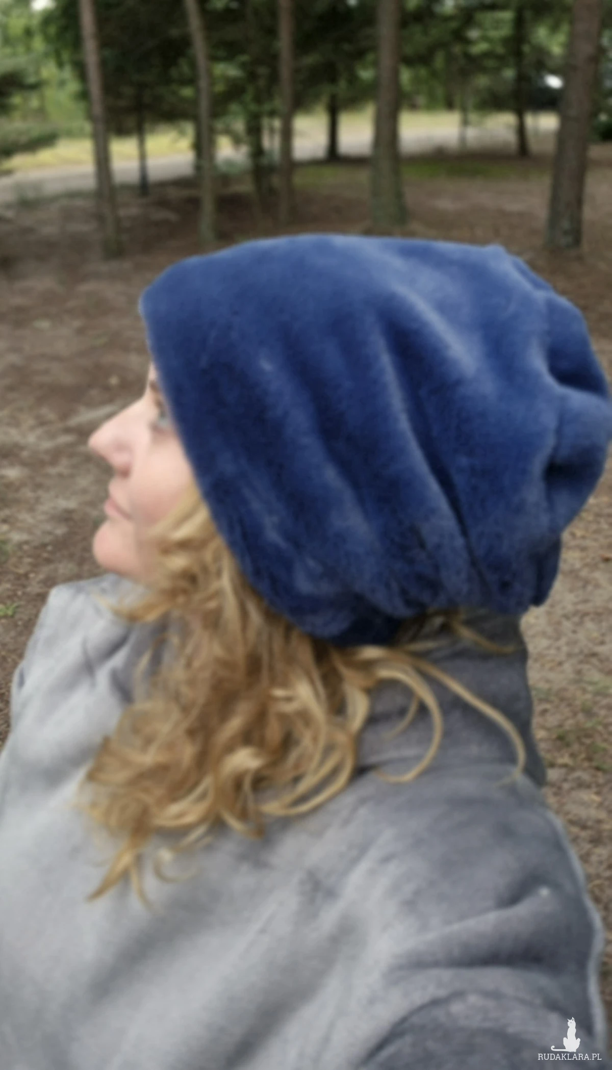 Ciepla  futrzana niebieska bardzo miła na podszewce, czapka dla artystki, rozmiar uniwersalny, nie zginiesz w tłumie  , box a1