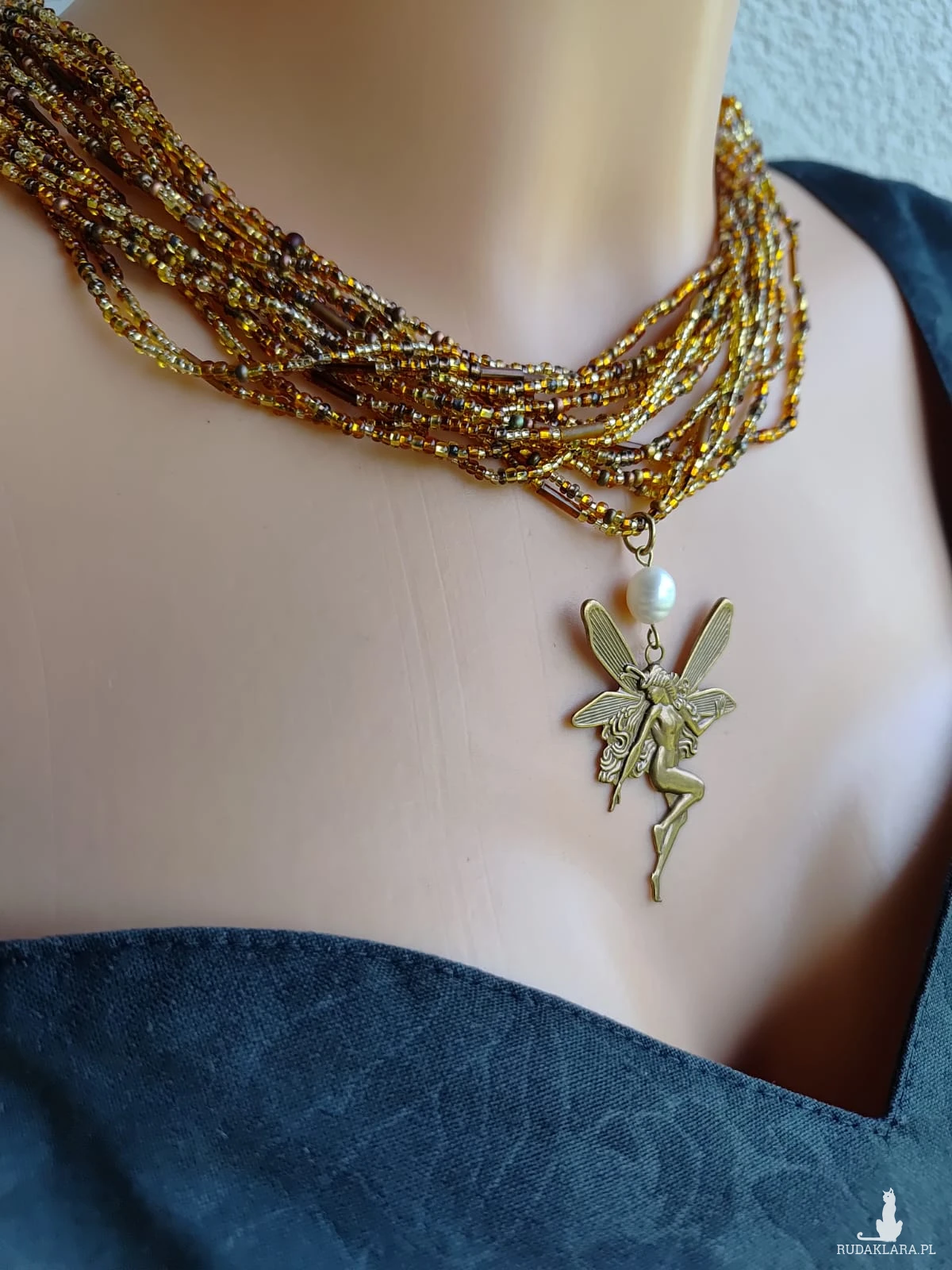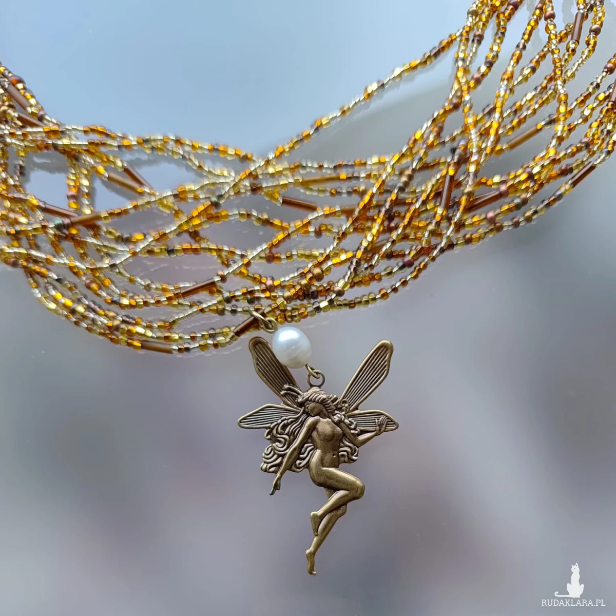 Naszyjnik Złote Koraliki z Wróżką