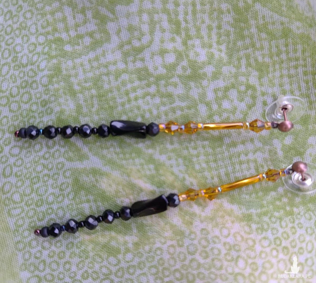 koralikami. Koraliki szklane kolorowe. Długość 7 cm, metalowe sztyfty,