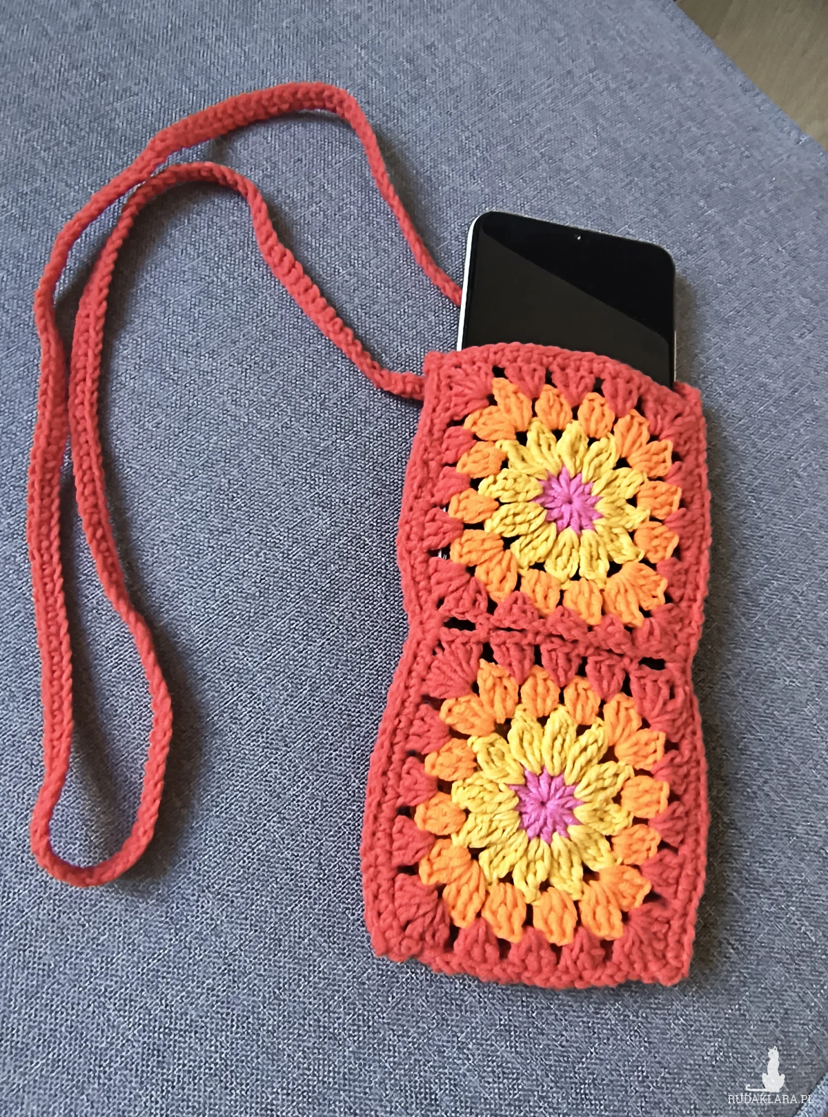 Kolorowe etui/ torebka na telefon. Kwadraty babuni, wesoły dodatek do każdej stylizacji.