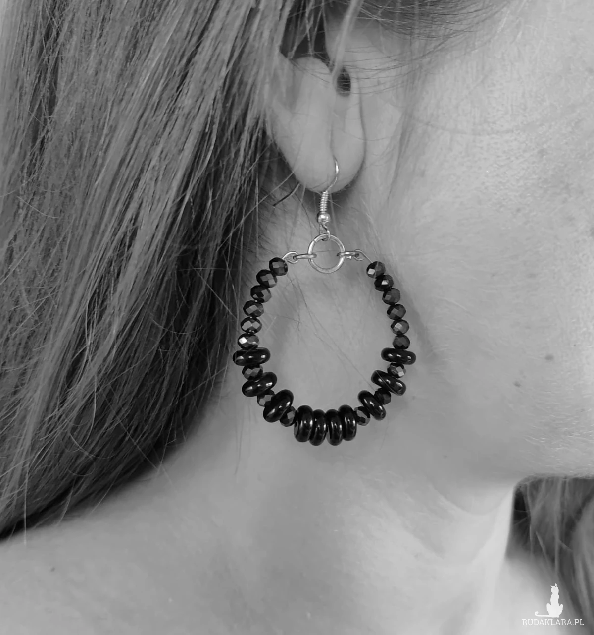 Kolczyki koła małe z koralików szklanych, oponki szklane, kryształki. Średnica koła 3 cm, bigiel metalowy