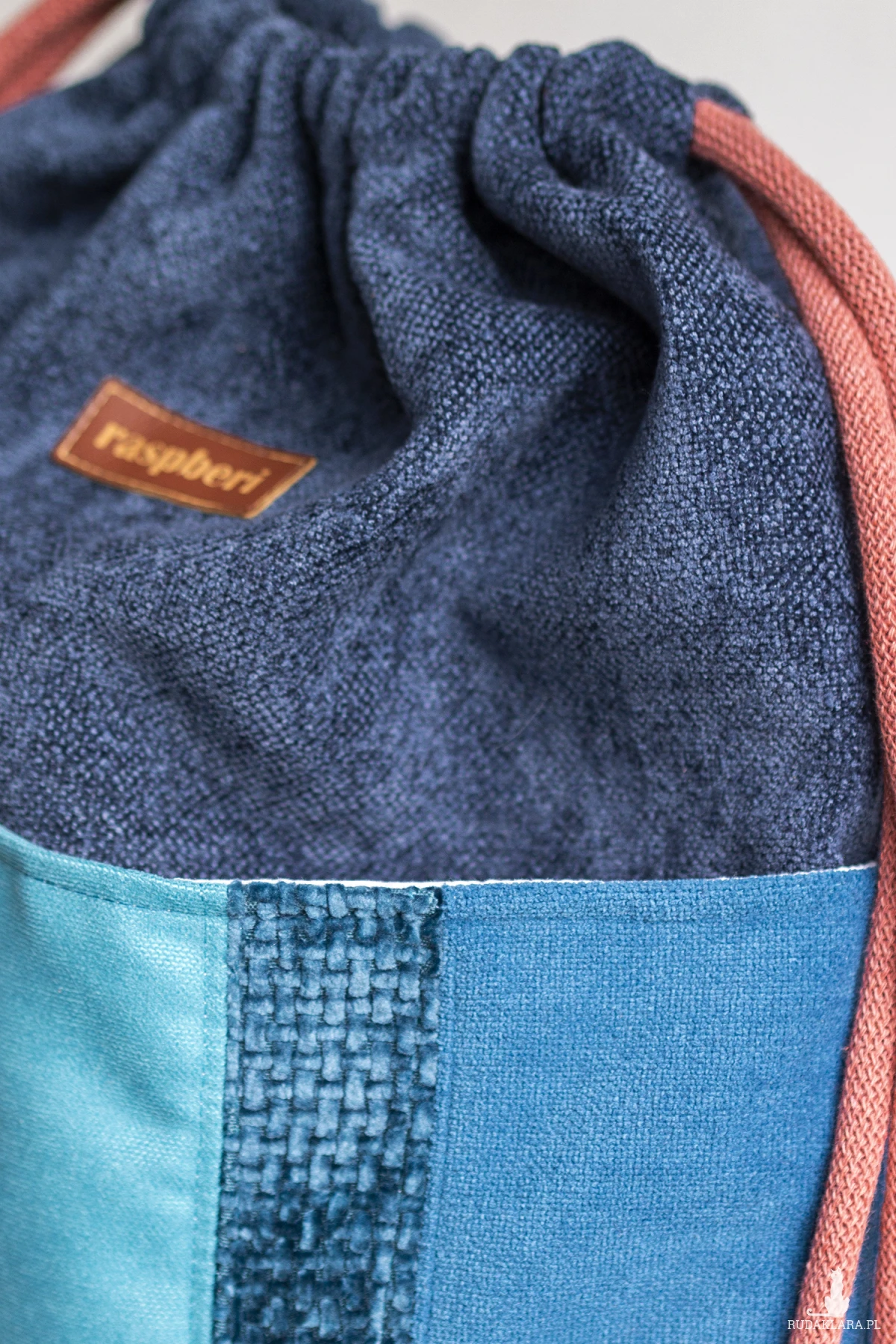 Workoplecak z tkaniny w kolorze granatowym.